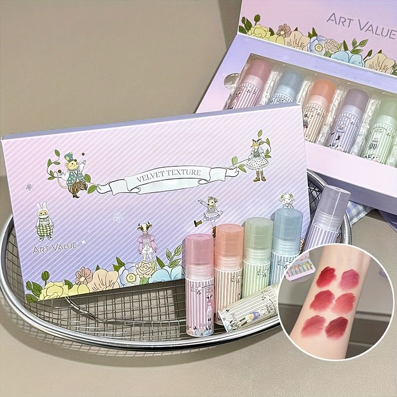 Get ready to transform your lips into an enchanting work of art with the velvet lipstick collection ‘Velvet Lip Paradise’! Discover a world of vibrant colors that give you an unforgettable, all-day lasting look. This luxurious set of 6 stunning shades is designed to suit every occasion and mood, highlighting your unique beauty with an unparalleled touch of elegance.