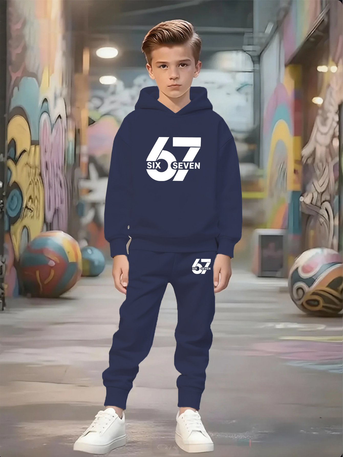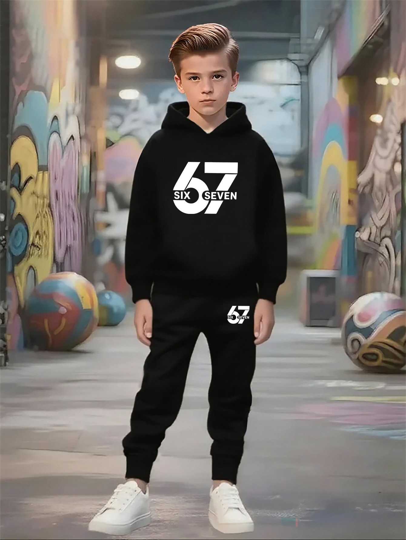• Modern & Attractive Design: Features a distinctive geometric pattern and a trendy ’67’ print on both the sweatshirt and pants, giving your son a unique, fashion-forward look that will turn heads and make him the center of attention.