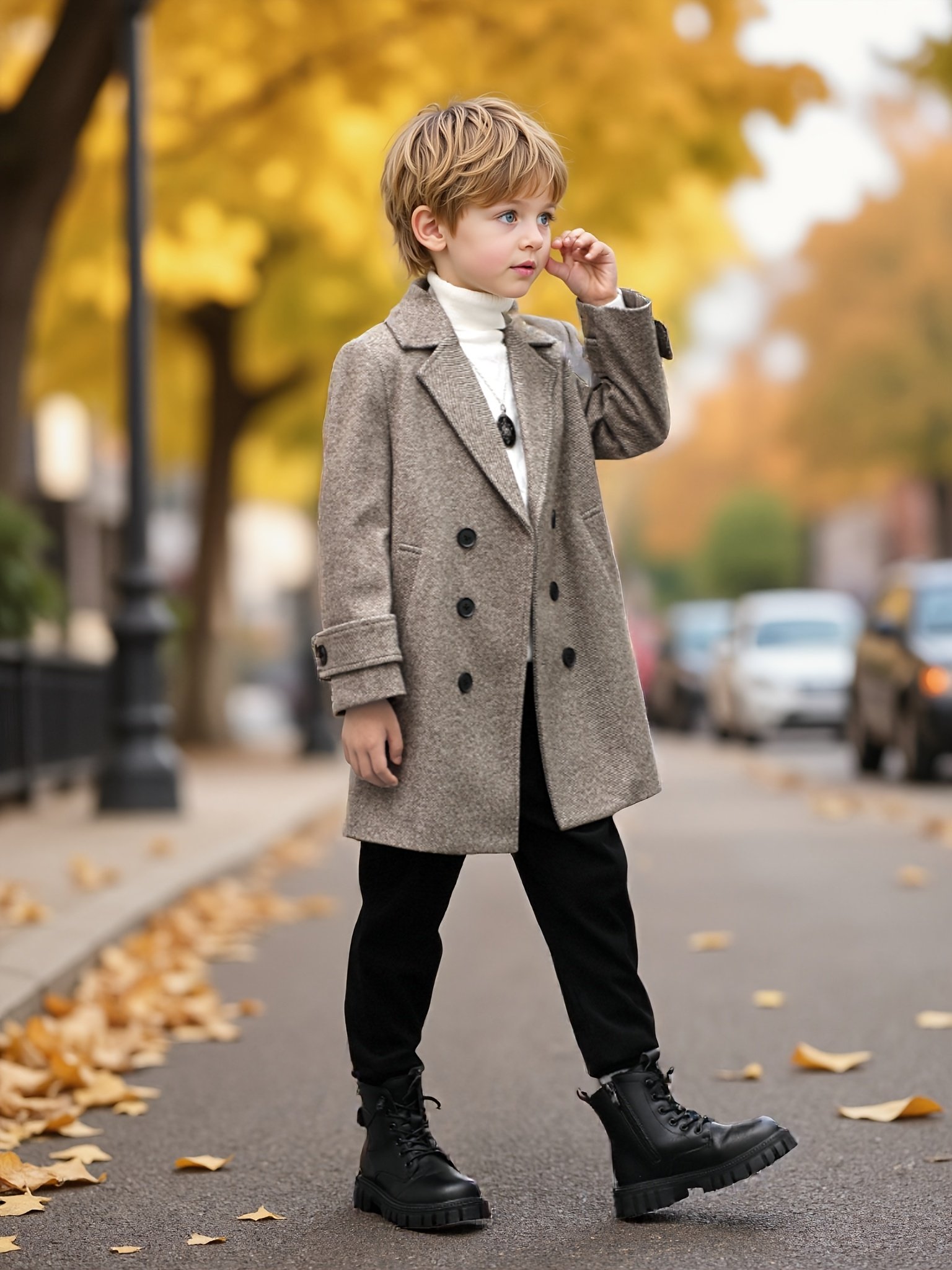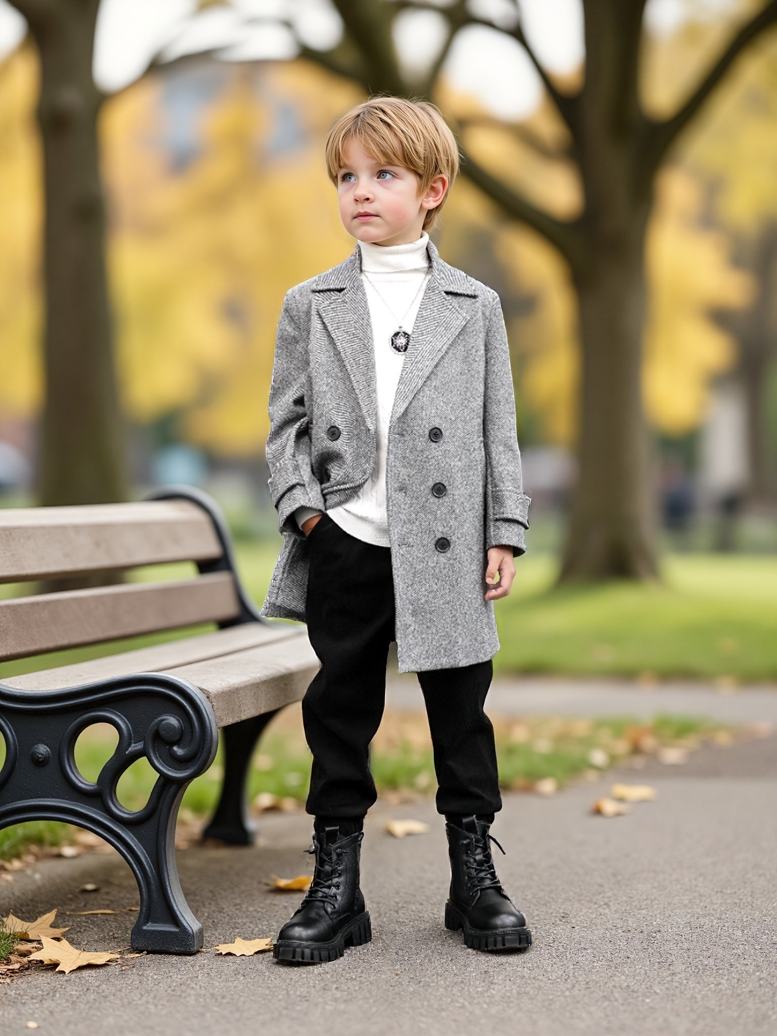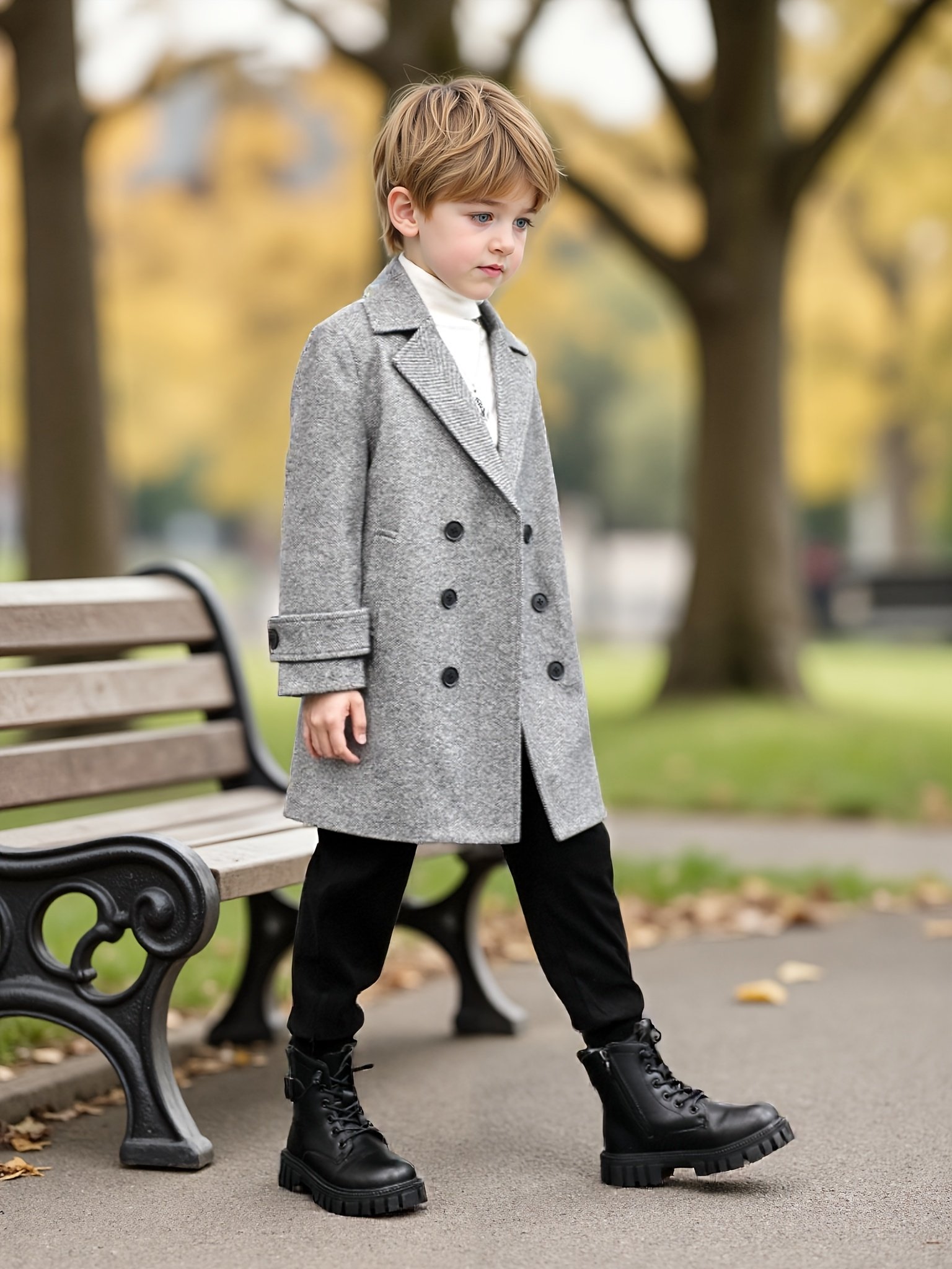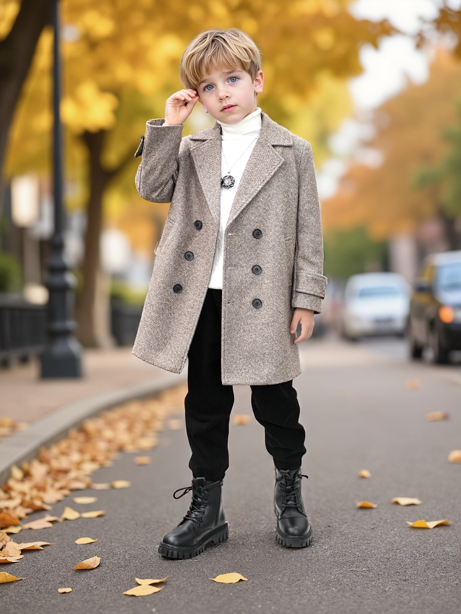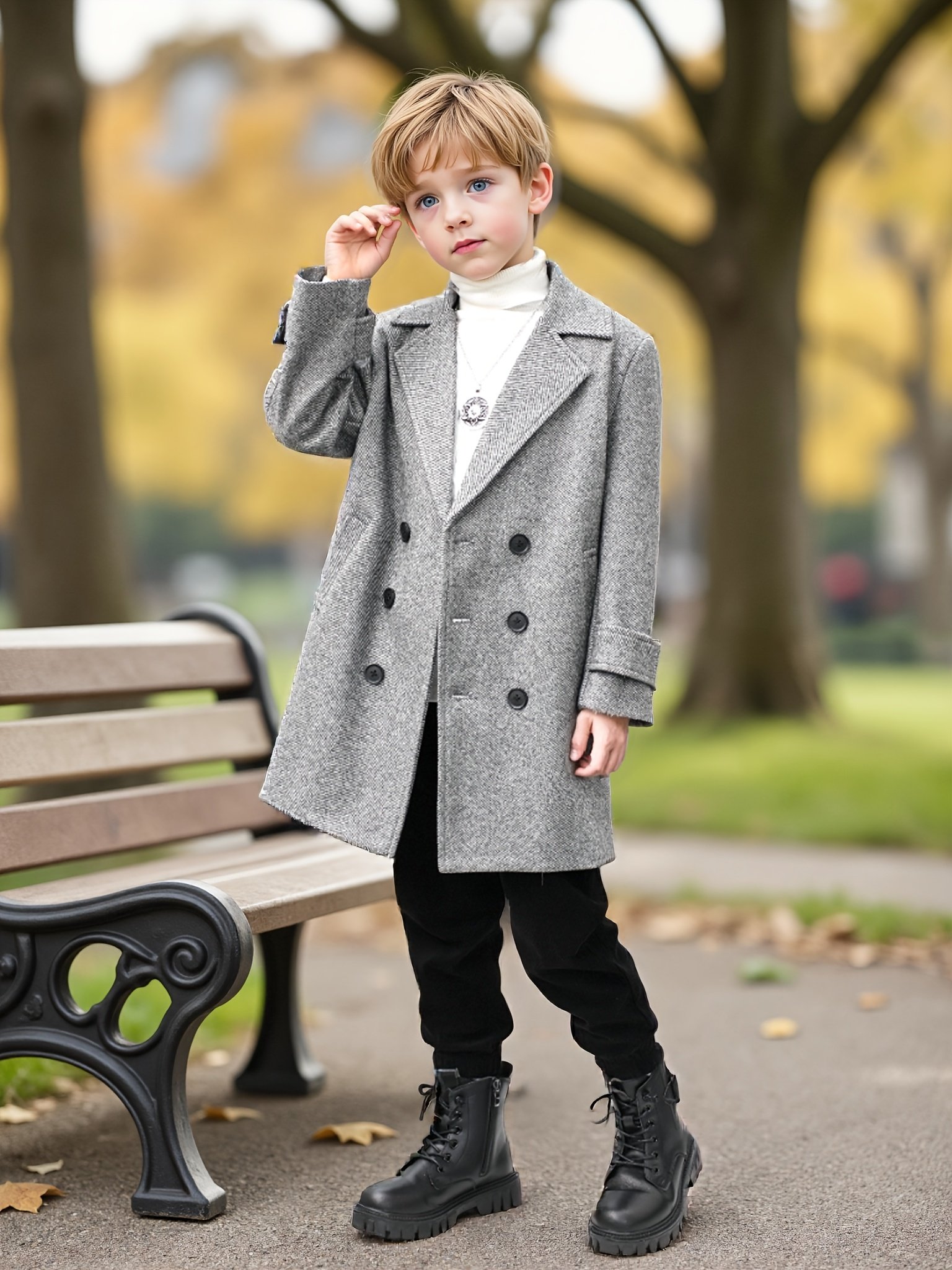 Are you looking for that enchanting touch to elevate your little one’s style during cold winter and autumn days? Present your little prince with an unforgettable look with our elegant coat, specially designed to combine warmth and luxury. Let your child shine at every occasion, from warm family gatherings to special parties, with this coat that embodies sophistication and comfort.
