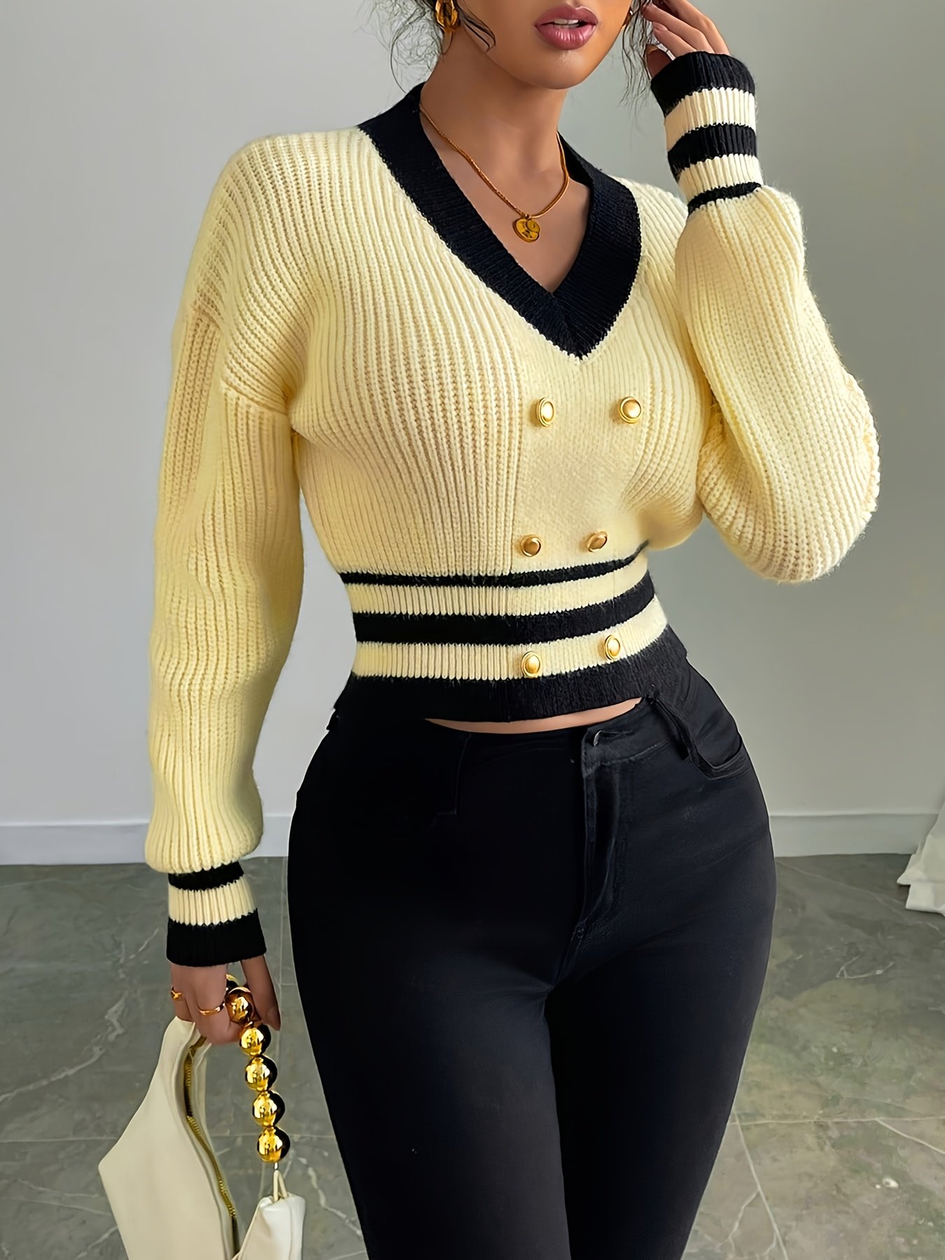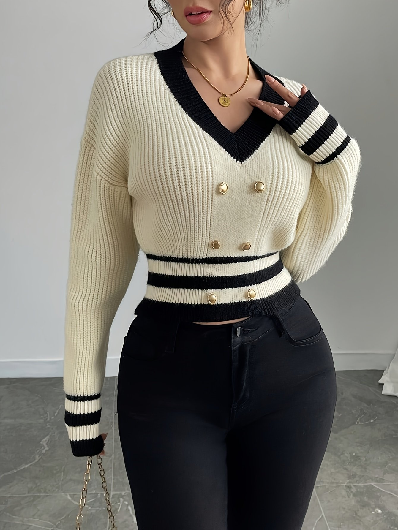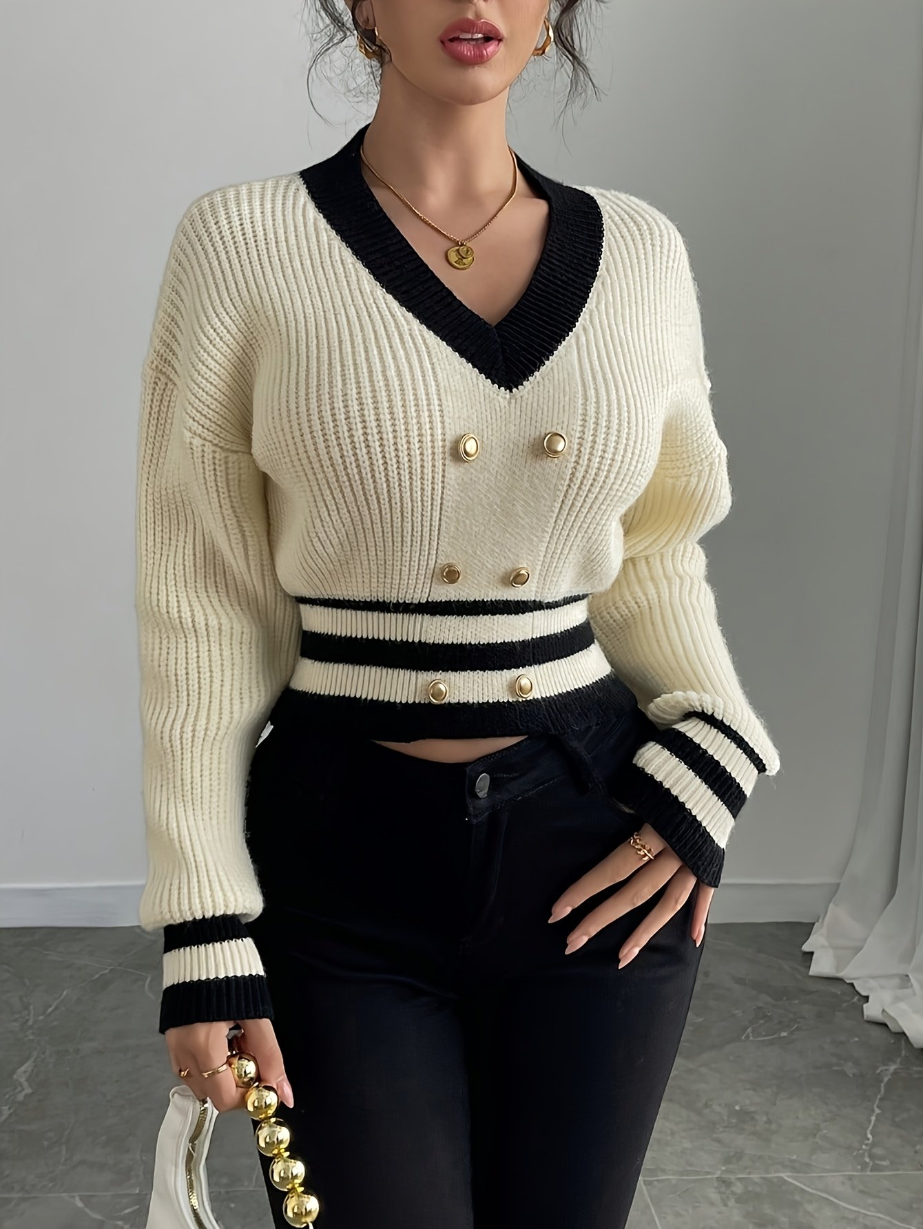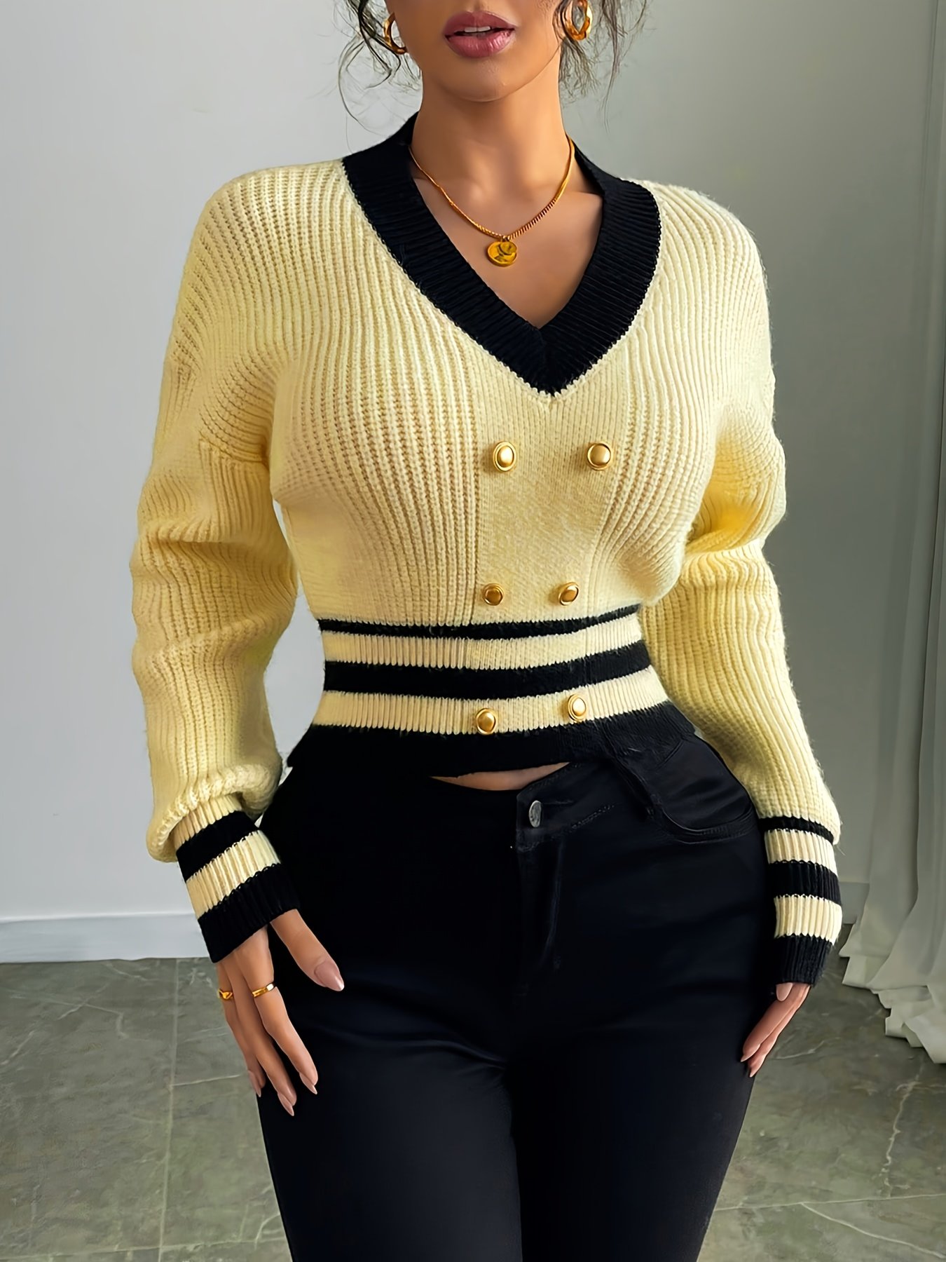 - Distinctive Faux Button Details: An elegant and modern touch of decorative faux buttons adorns the sweater, adding a special character and uniqueness to the overall design and enhancing your elegance.