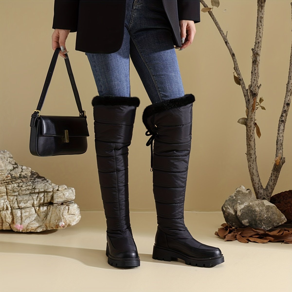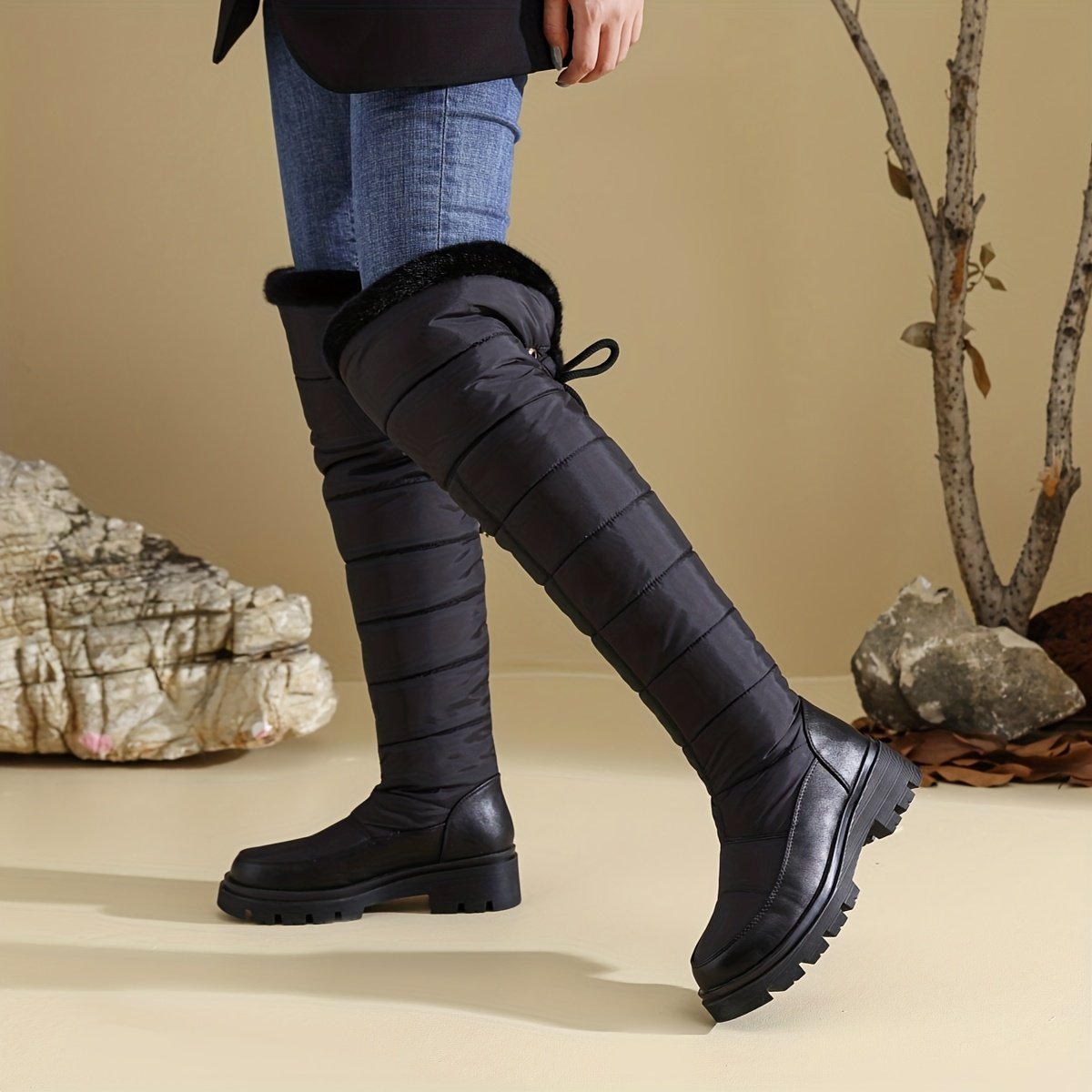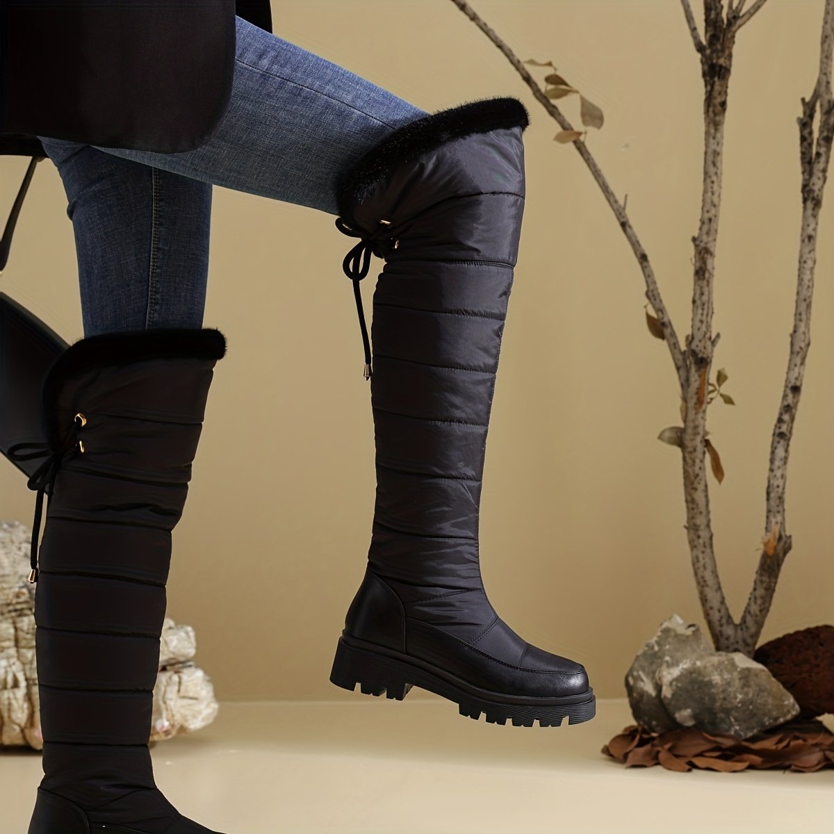 Get ready to embrace winter with confidence and elegance with these luxurious knee-high boots, specially designed for the modern woman who refuses to compromise on beauty or comfort. These boots are not just footwear; they are an expression of warm style that accompanies you every step of the way, from daily meetings to formal occasions. Keep the cold out and shine with enchanting warmth and unparalleled charm.