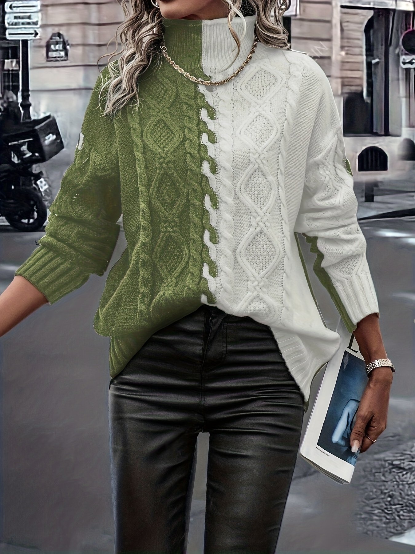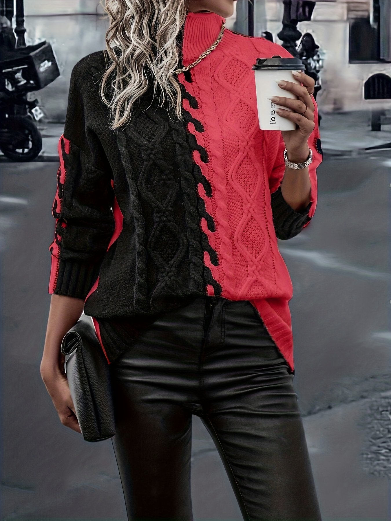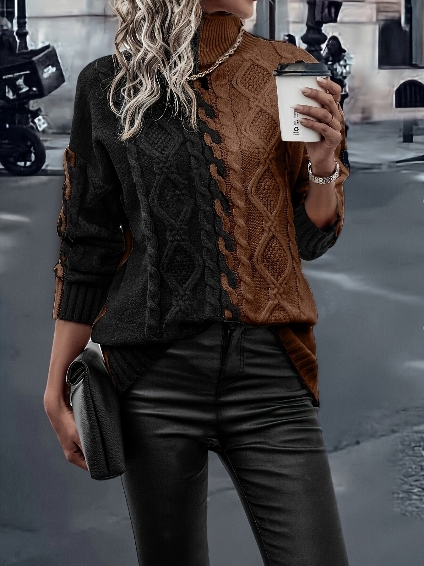 Prepare to embrace the colder seasons with unparalleled elegance and unmatched warmth in our unique color block sweater. More than just a piece of clothing, this sweater is an expression of your sophisticated taste and your commitment to both comfort and coziness. It’s designed to be your perfect companion for all your winter looks, whether for work or leisure.