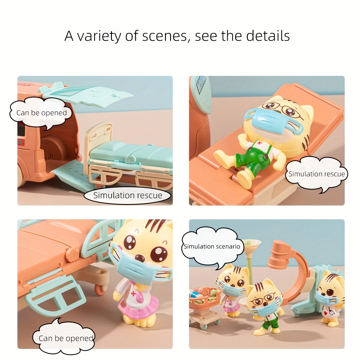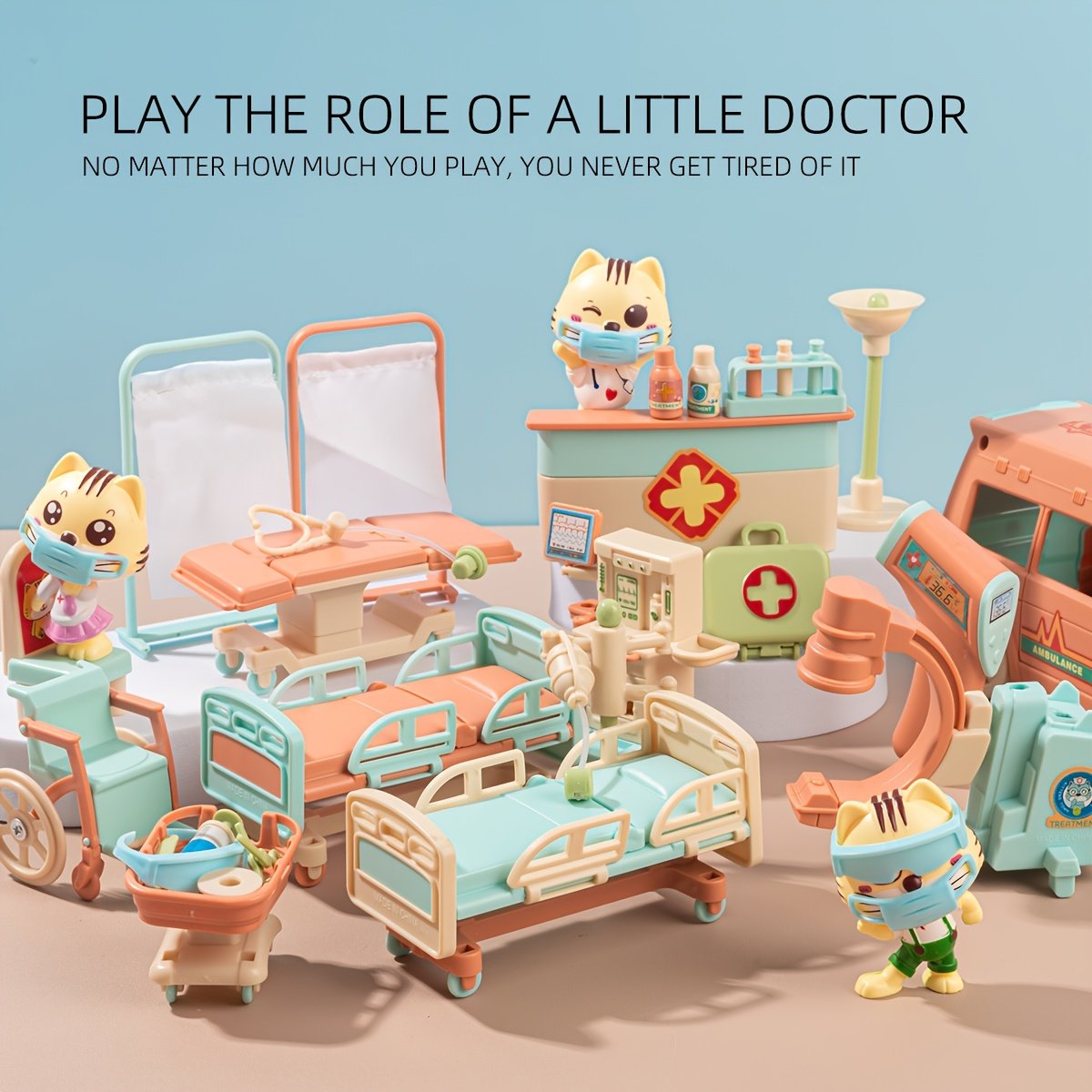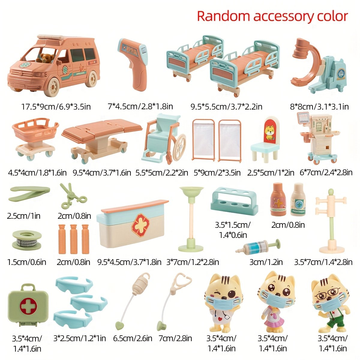 - Realistic Simulation Experience: The set includes miniature models of a fully equipped hospital and a movable ambulance, providing an immersive play experience that simulates real medical scenarios for rescuing pets, and helps in understanding the roles of doctors and assistants.