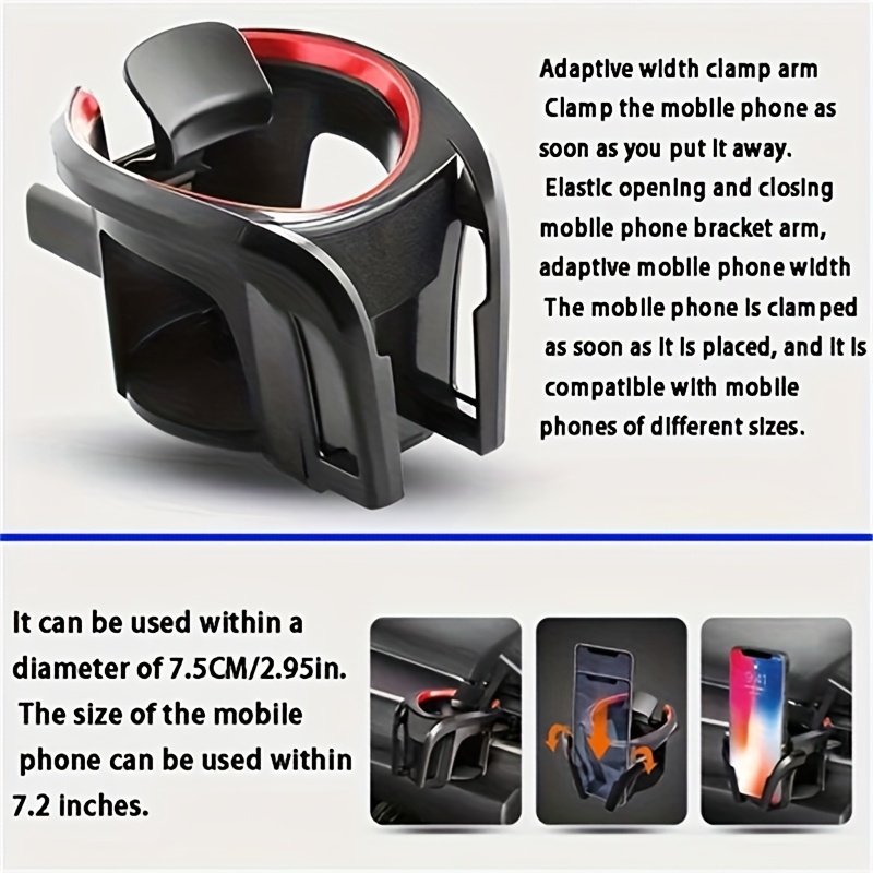 - Your Smart Dual Companion: Cleverly combines a durable cup holder and a secure mount for your smartphone, so you can say goodbye to car clutter and keep everything you need within reach while driving.