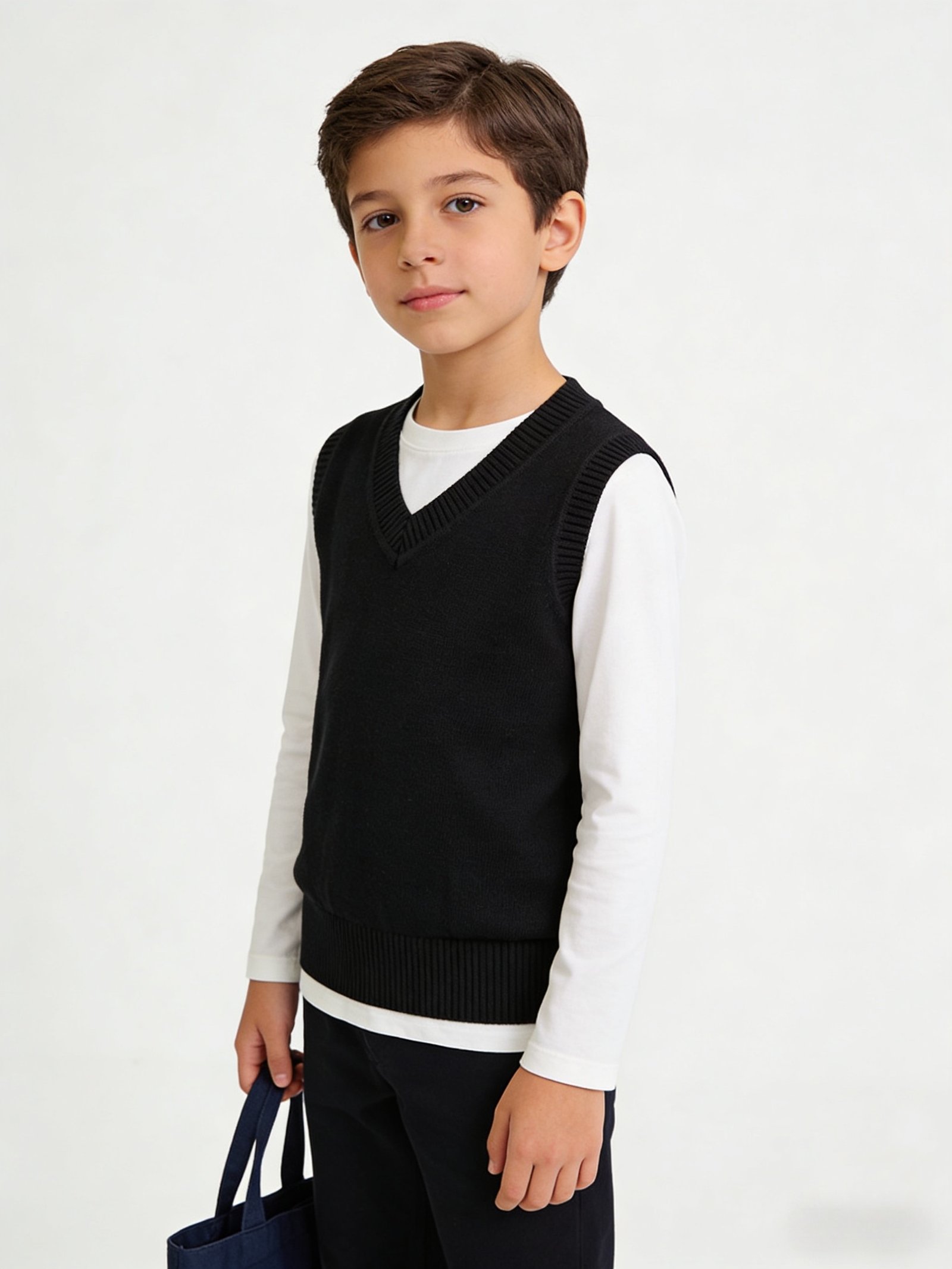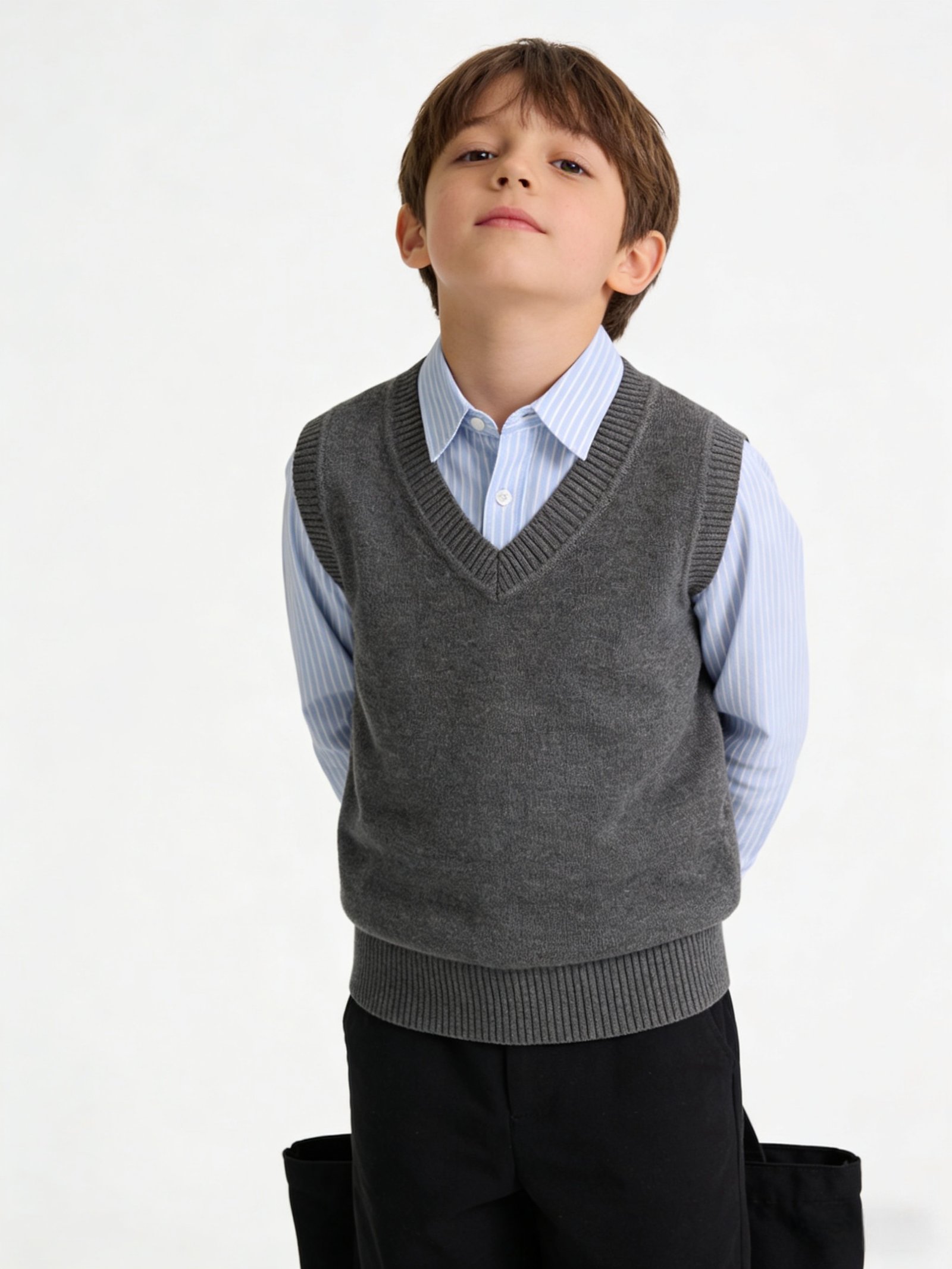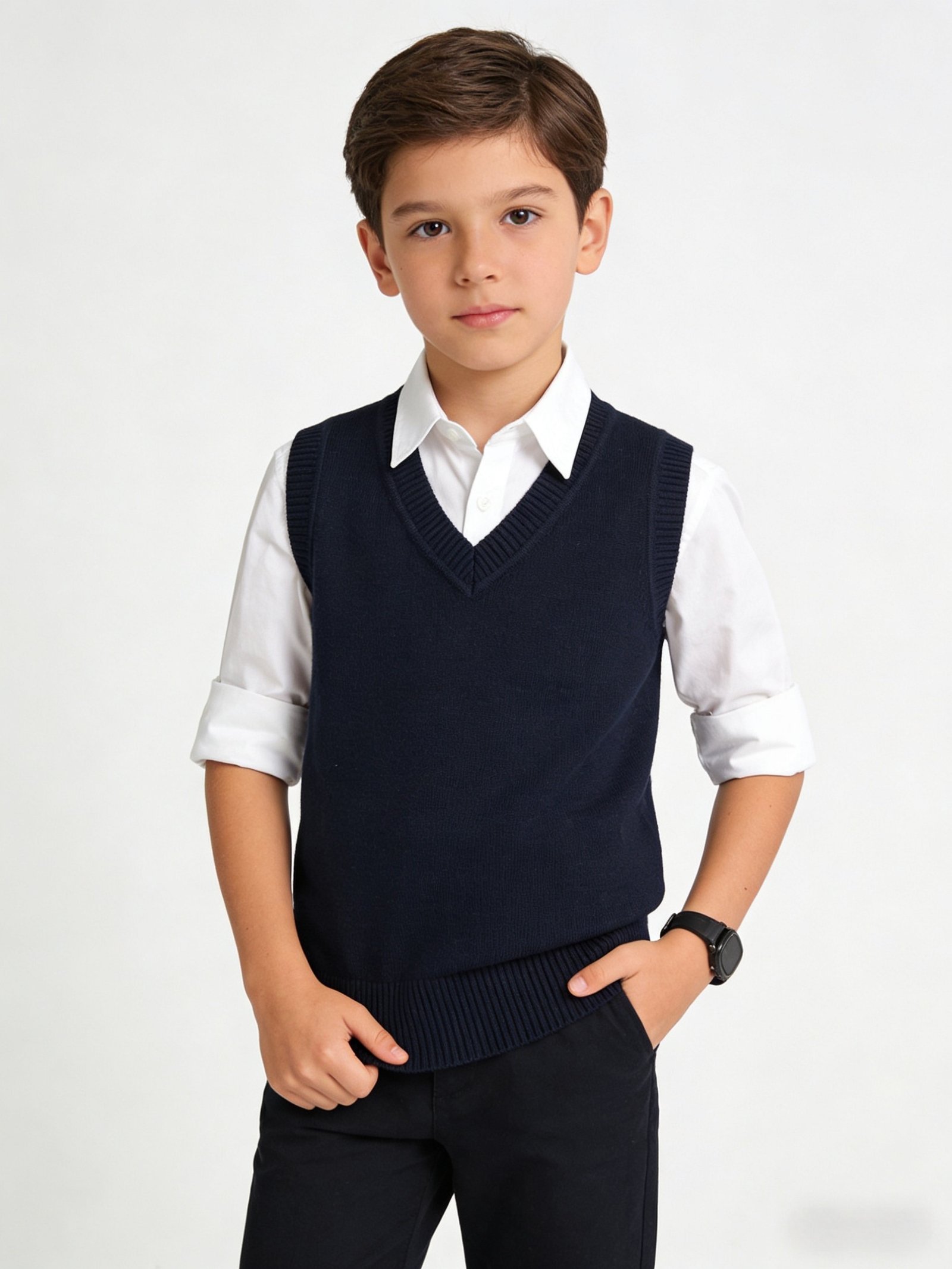 - Elegant and Practical Design: The sweater features a V-neck cut and a classic solid color, making it the perfect choice for stylish daily looks. Easy to coordinate with various trousers and shirts, it adds a touch of modern elegance to your little one’s outfit.
