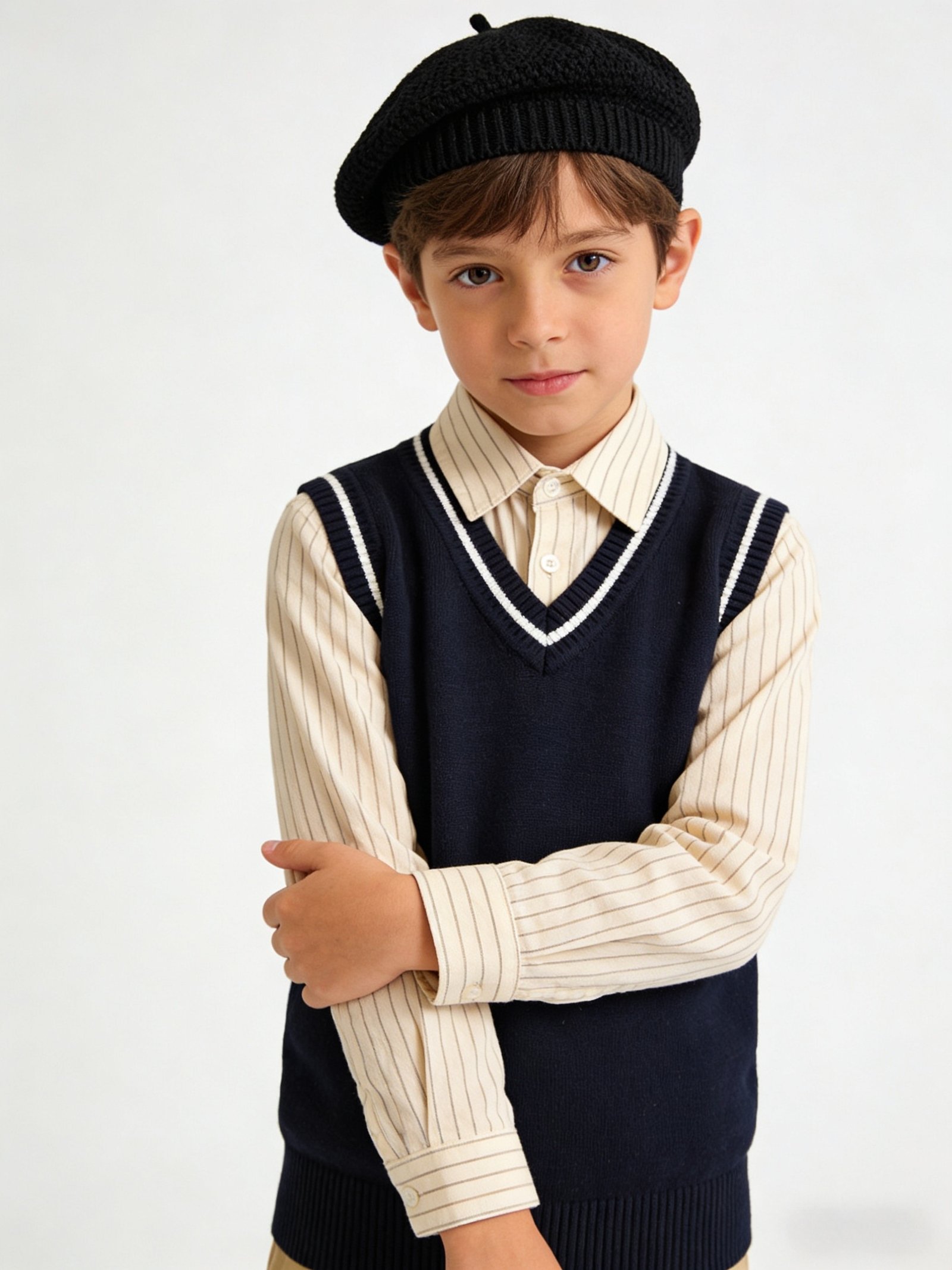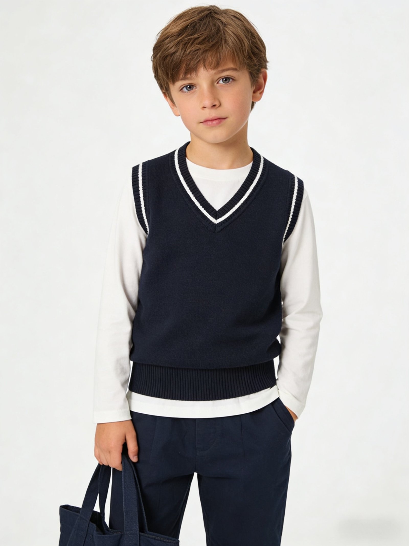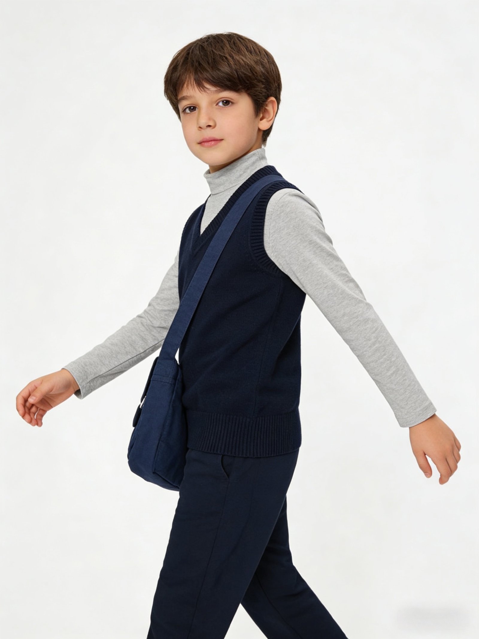 - Elegant and Practical Design: The sweater features a V-neck cut and a classic solid color, making it the perfect choice for stylish daily looks. Easy to coordinate with various trousers and shirts, it adds a touch of modern elegance to your little one’s outfit.