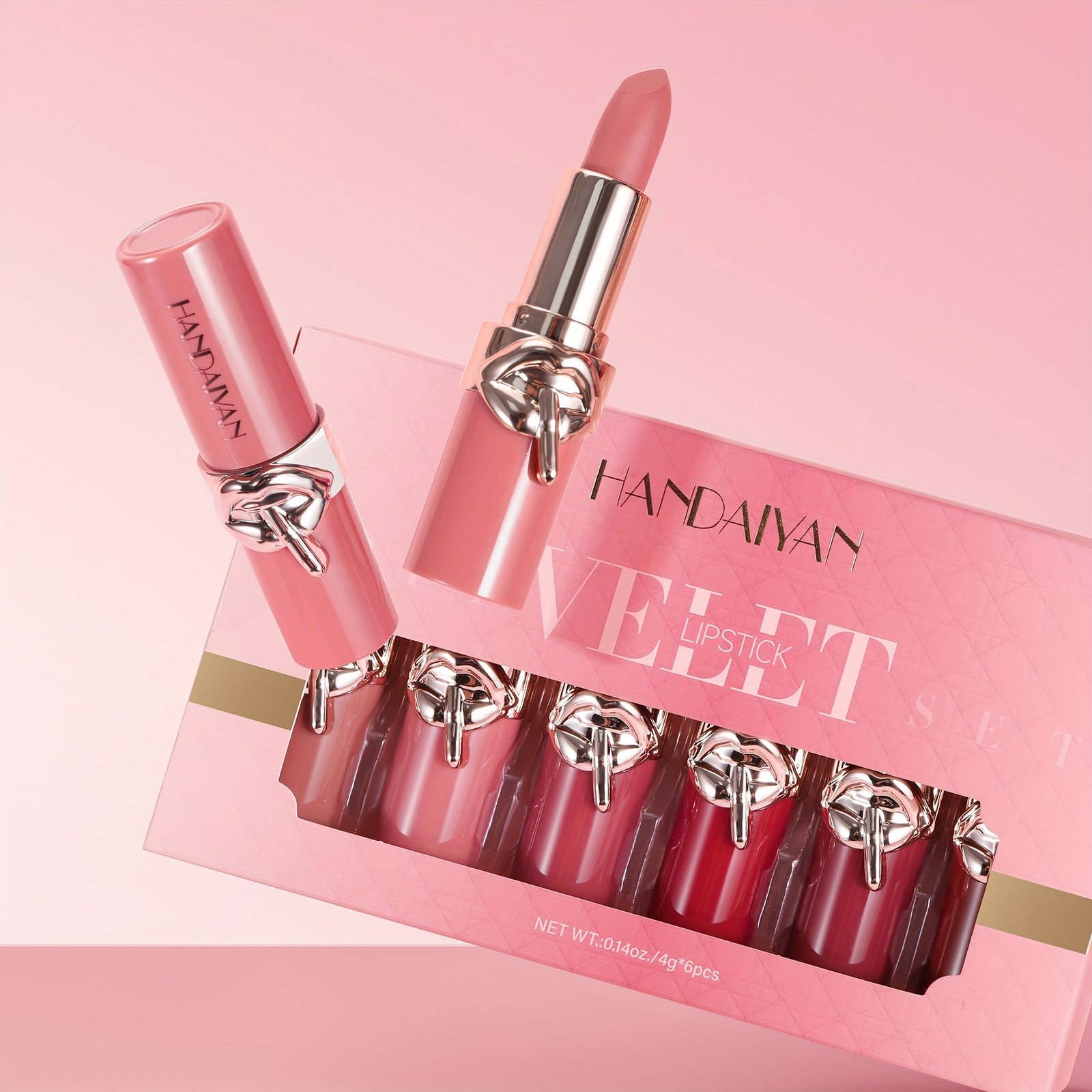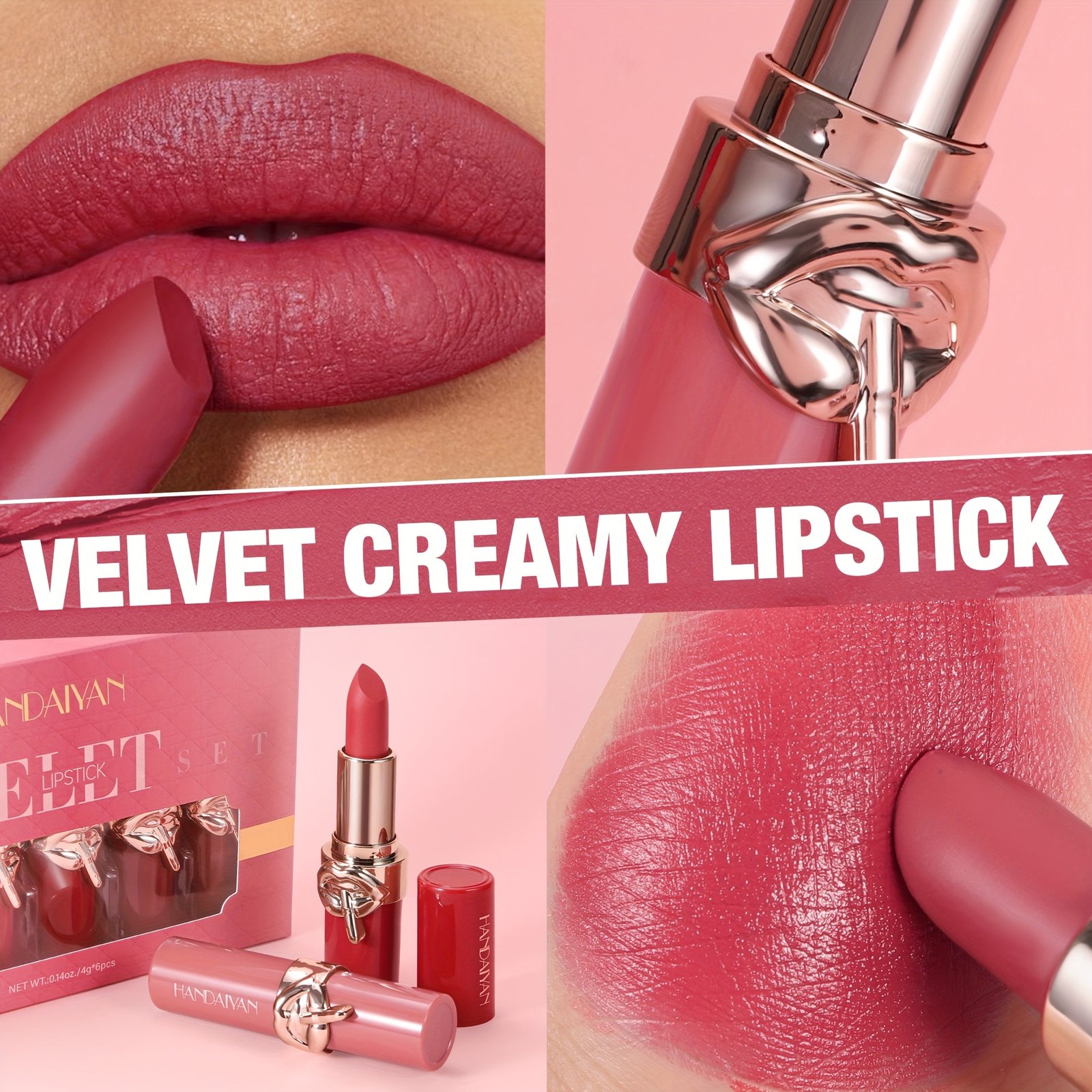 Discover absolute allure and long-lasting beauty with the HANDAIYAN Matte Cream Lipstick Collection. This exquisite collection is designed to give you a complete and captivating look that lasts for hours, no matter the occasion. Let your lips speak volumes about your unique elegance and charm, with an unforgettable velvety finish!