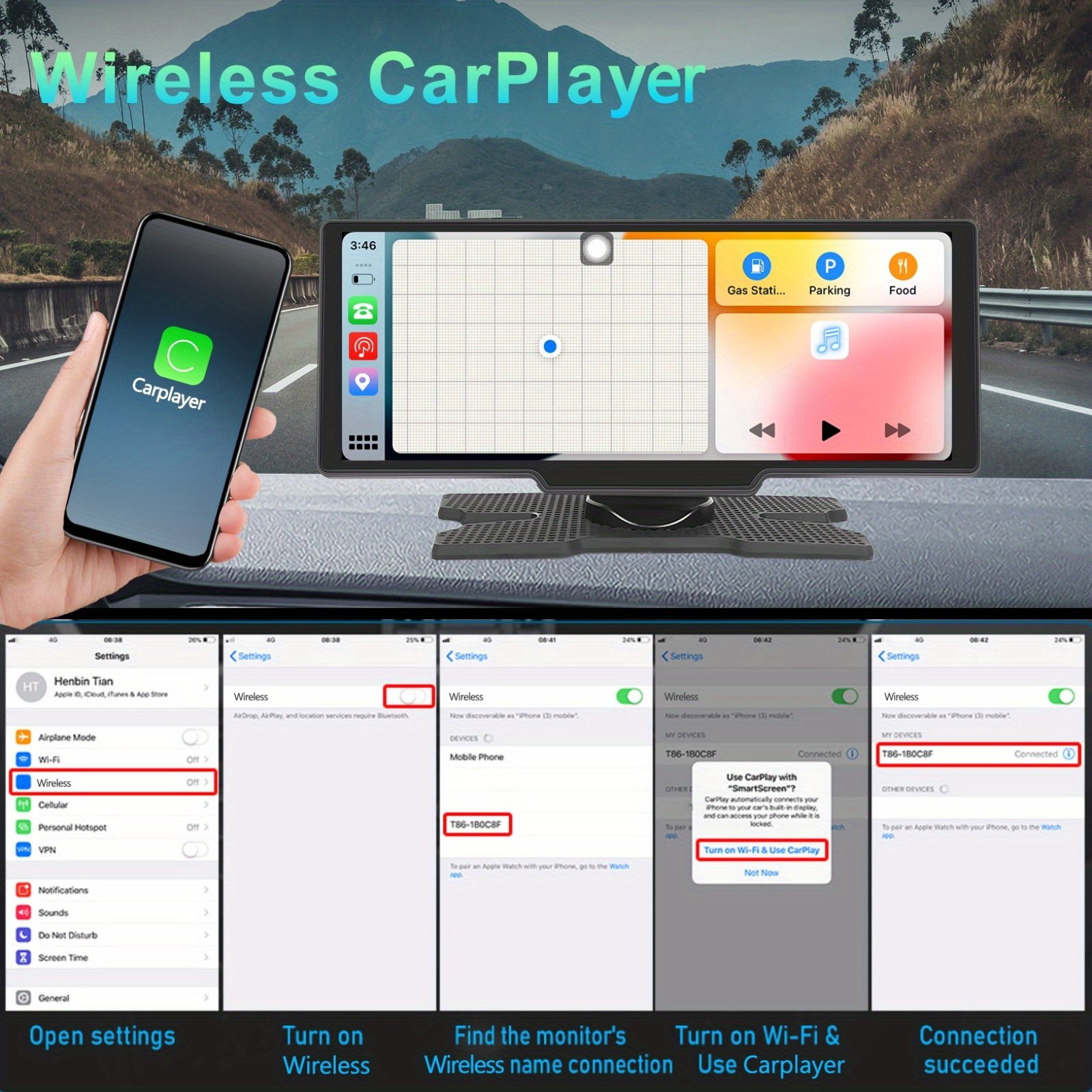 - Wireless CarPlay & Android Auto Support: Stay connected and focused on the road. Use your favorite maps, make calls, receive messages, and listen to music directly from your smartphone on the screen, freely and without annoying wires.