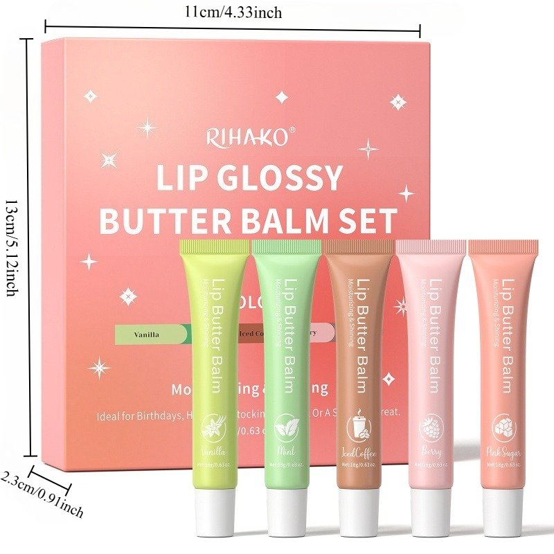 - خمسة في واحد: استمتعي بتشكيلة فريدة من خمس زبدات شفاه ومرطبات لامعة، مثالية كهدية راقية لأحبابك أو لتدليل نفسك بتجربة عناية متكاملة تليق بجمالك.