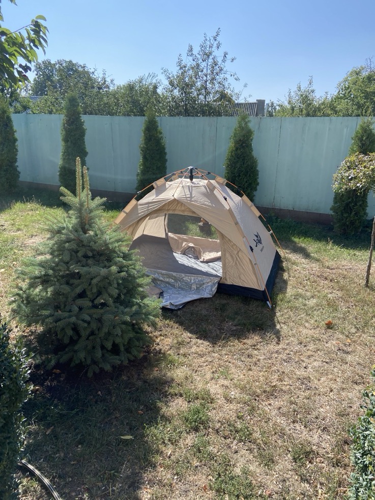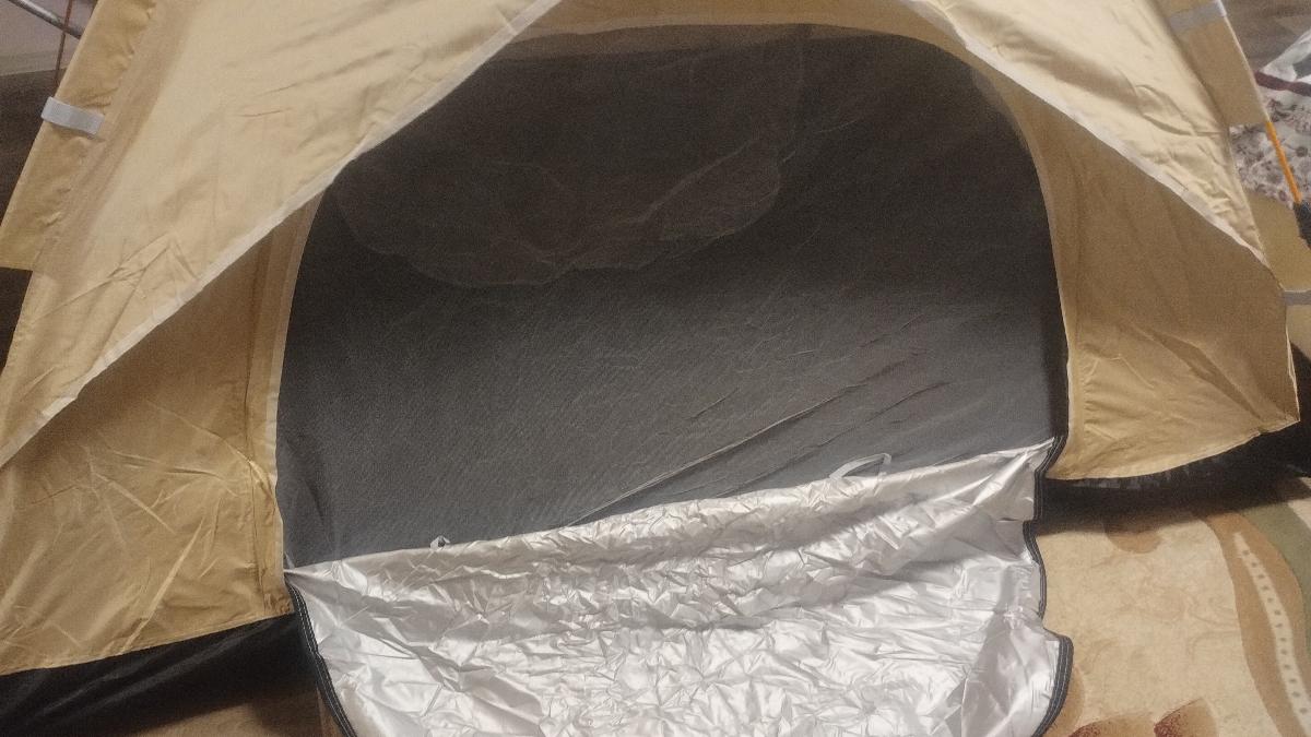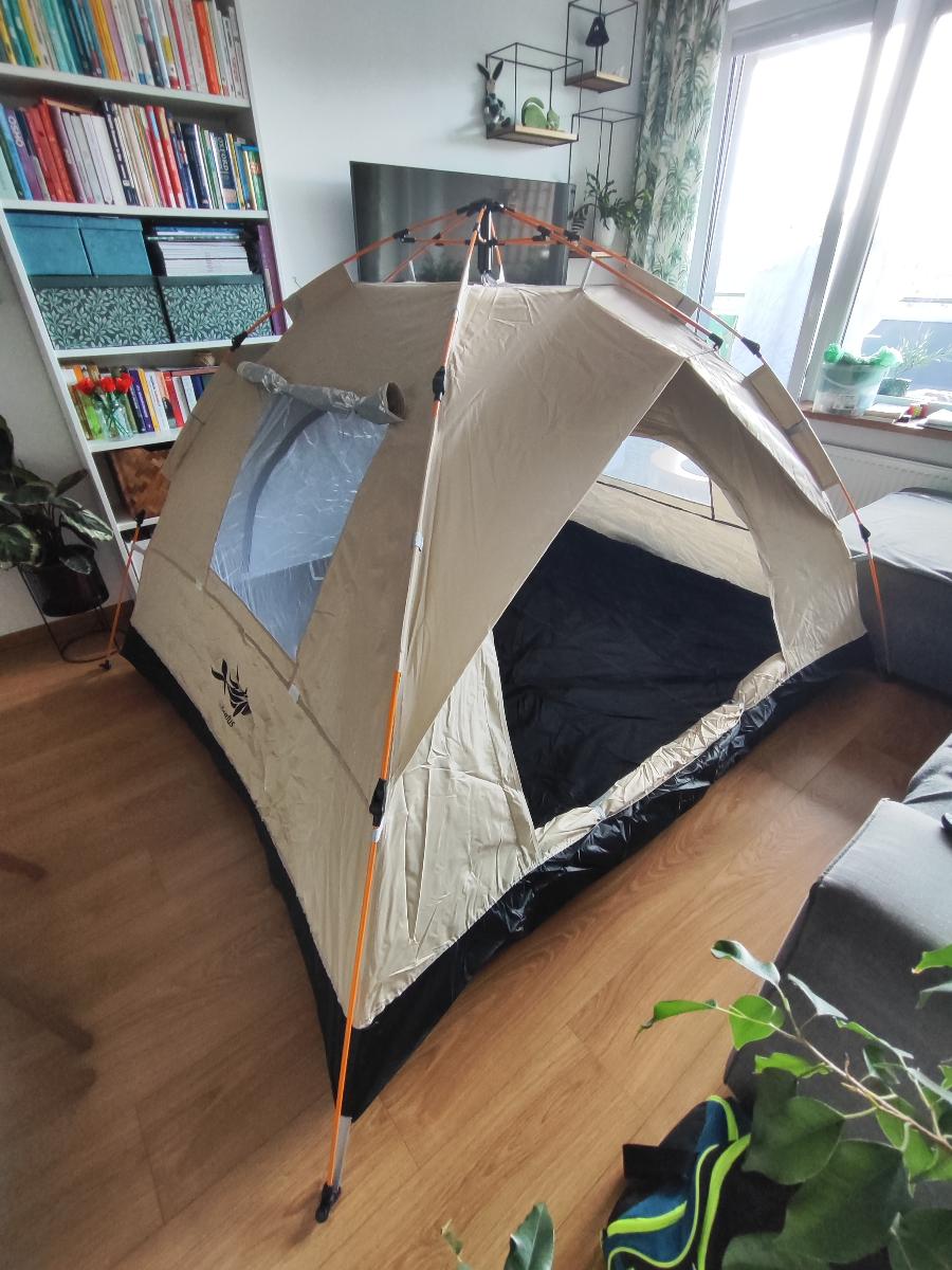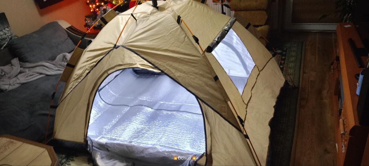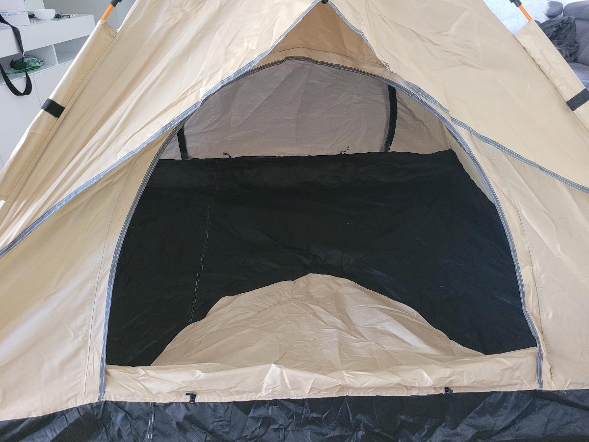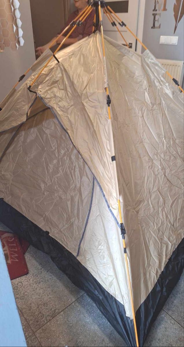 خيمة مثالية بالنسبة للسعر! مريحة جداً لشخصين بالغين، سهلة التركيب – يمكن فردها في دقيقتين. أنصح بها.
