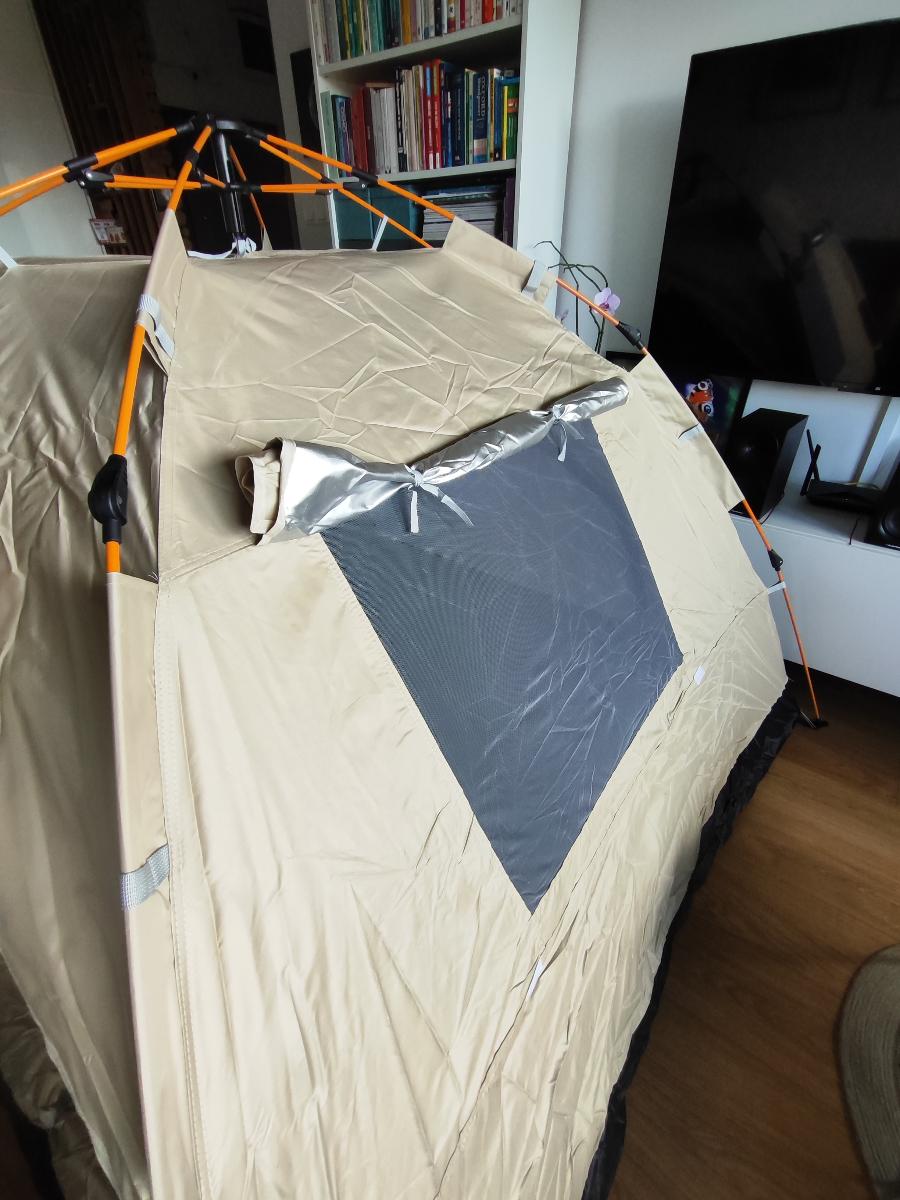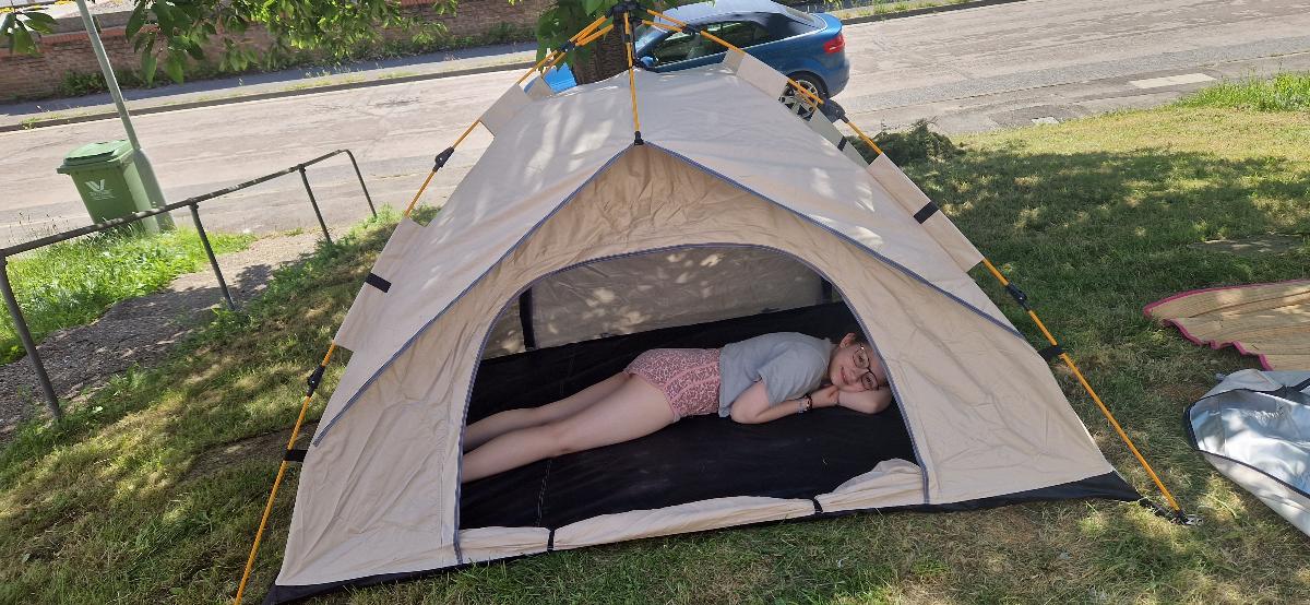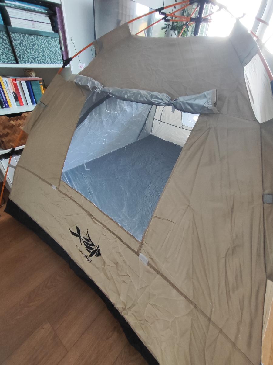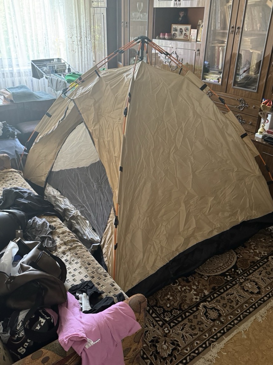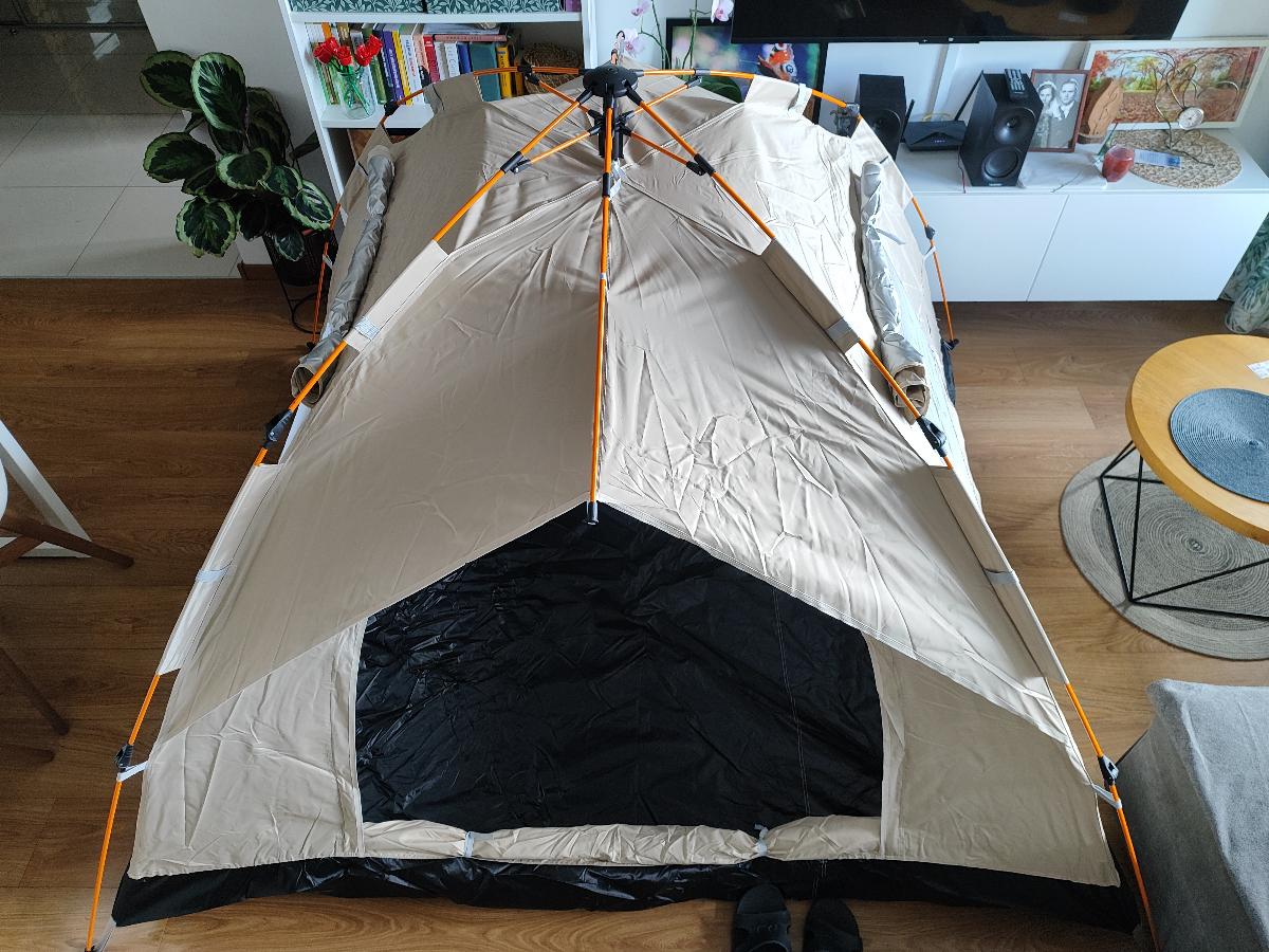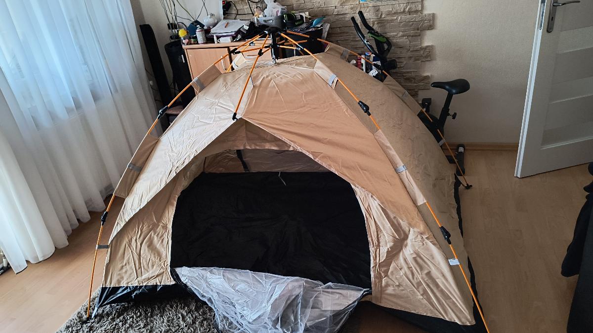 خيمة مثالية بالنسبة للسعر! مريحة جداً لشخصين بالغين، سهلة التركيب – يمكن فردها في دقيقتين. أنصح بها.
