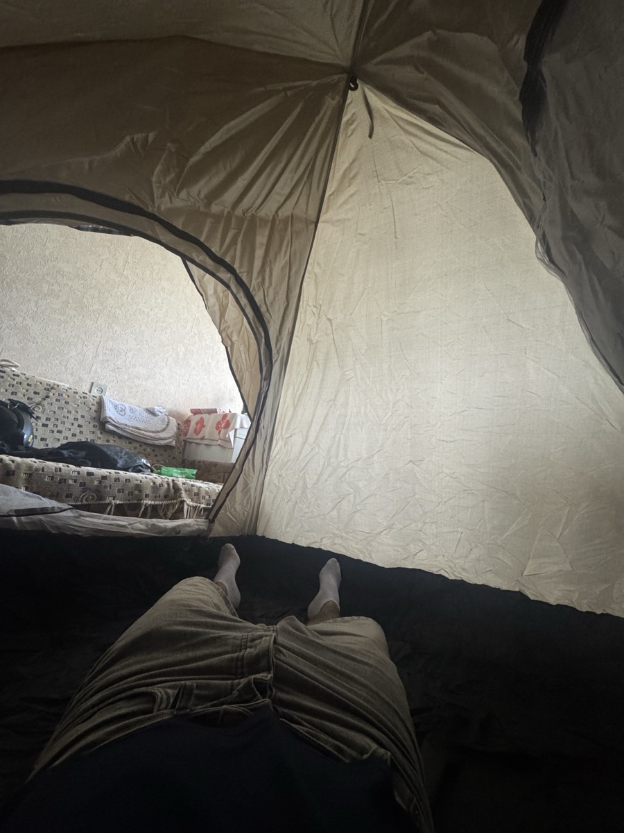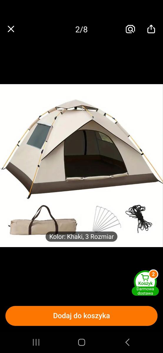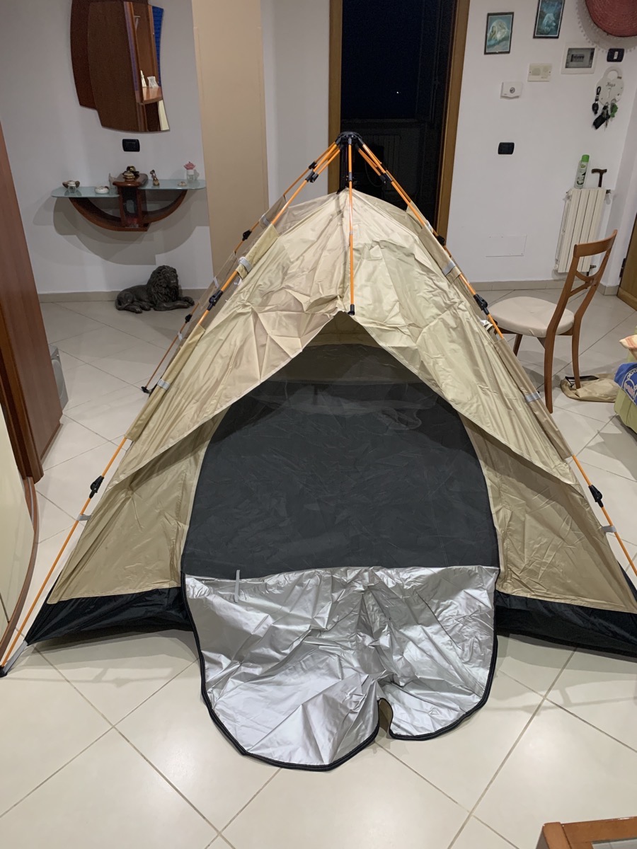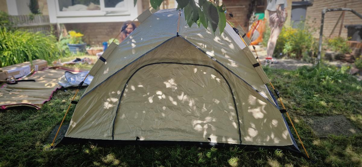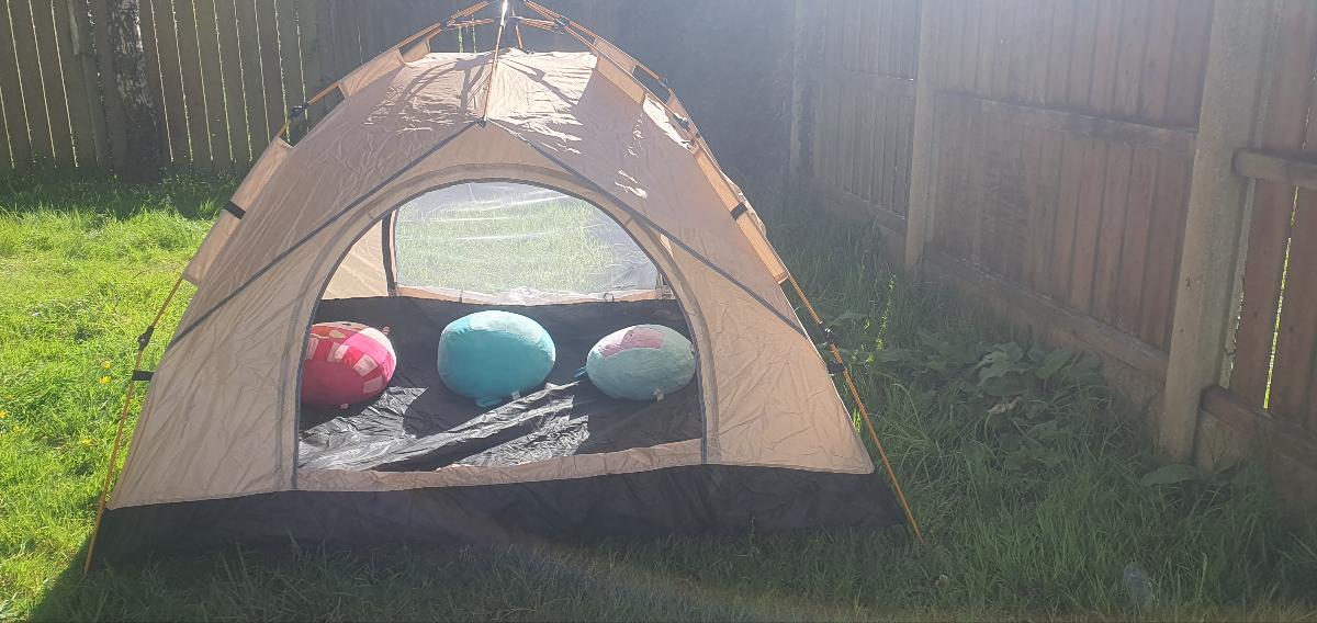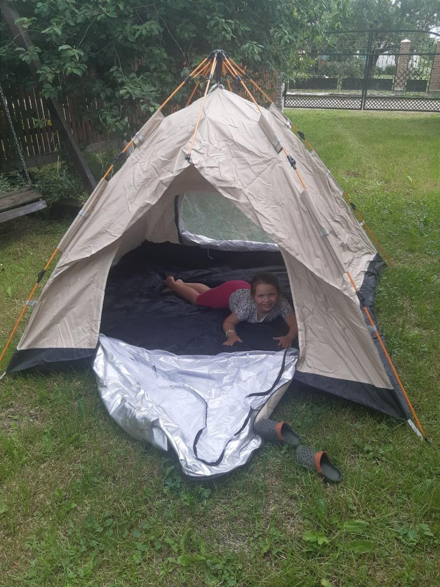 خيمة مثالية بالنسبة للسعر! مريحة جداً لشخصين بالغين، سهلة التركيب – يمكن فردها في دقيقتين. أنصح بها.