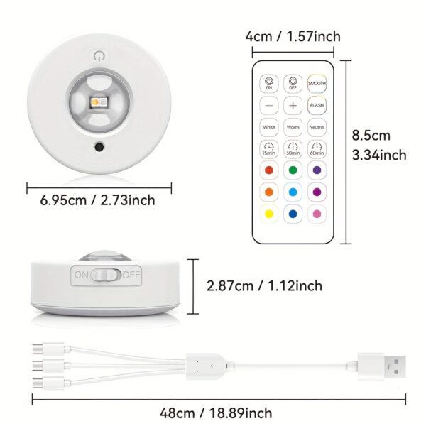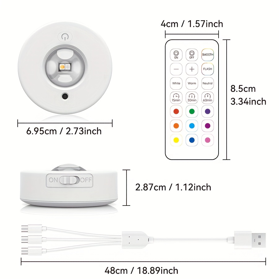 - قابلة لإعادة الشحن عبر USB: استمتع بحرية الإضاءة اللاسلكية دون الحاجة إلى أسلاك مزعجة أو تغيير بطاريات باستمرار. اشحنها بسهولة عبر أي منفذ USB واستفد من بطارية الليثيوم عالية الأداء وطويلة الأمد.