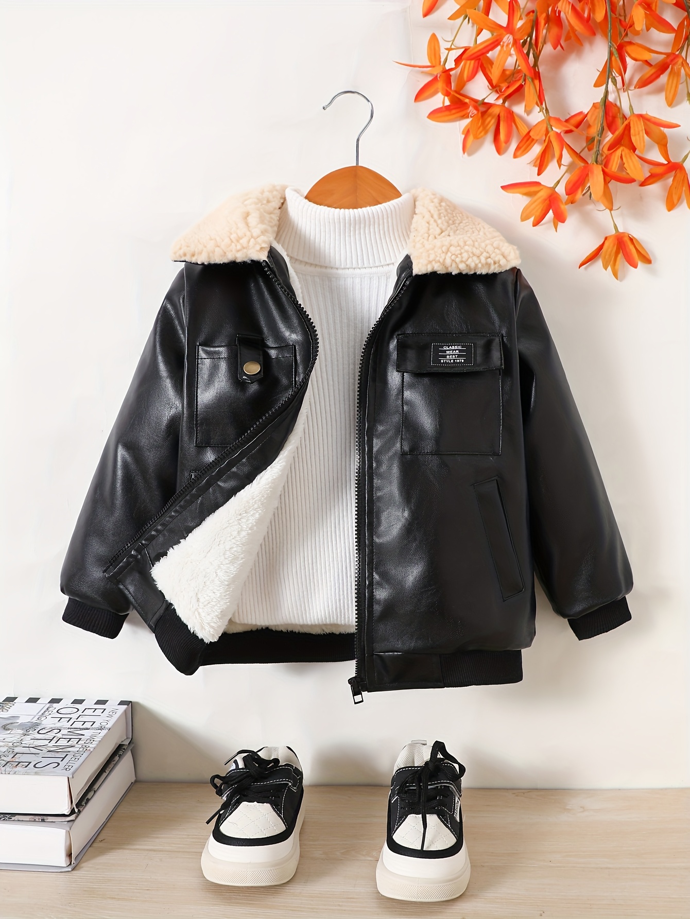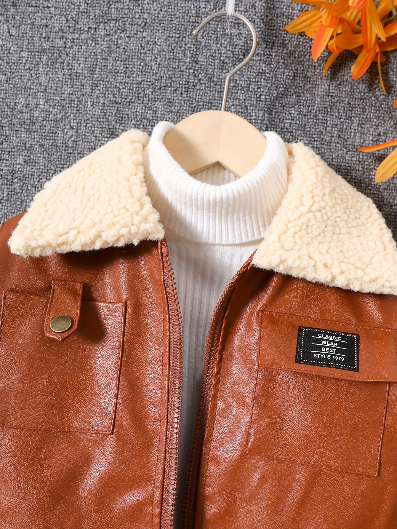 اجعل شتاء طفلك مليئًا بالأناقة والدفء مع جاكيت الأبطال الصغار! تصميم عصري يجمع بين المظهر الجذاب للجلد الصناعي والبطانة الدافئة ليمنح طفلك الحماية المثالية من برودة الجو دون التنازل عن اللمسة الجمالية. مثالي للمغامرات اليومية، المدرسة، أو حتى النزهات العائلية، هذا الجاكيت هو الخيار الأمثل لطفلك الباحث عن الدفء والأناقة في آن واحد.