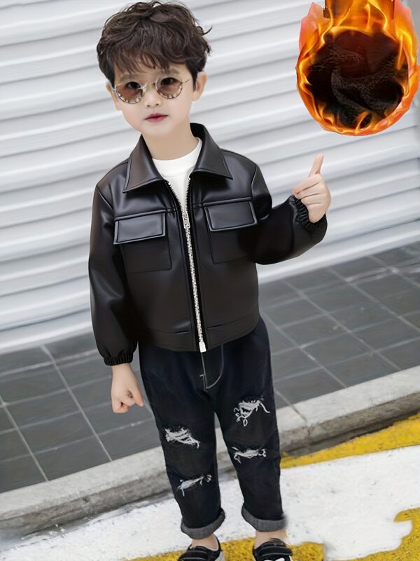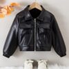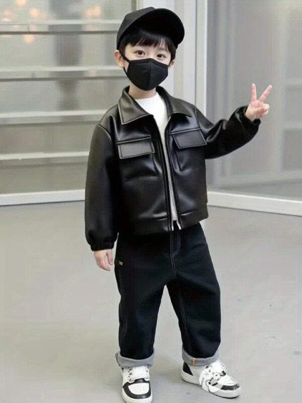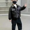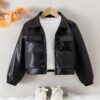 - المادة الفاخرة: مصنوع من جلد البولي يوريثين (PU) عالي الجودة، يمنح الجاكيت ملمسًا ناعمًا ومظهرًا جلديًا فاخرًا يدوم طويلًا، مما يضفي لمسة من الرقي على إطلالة طفلكم.