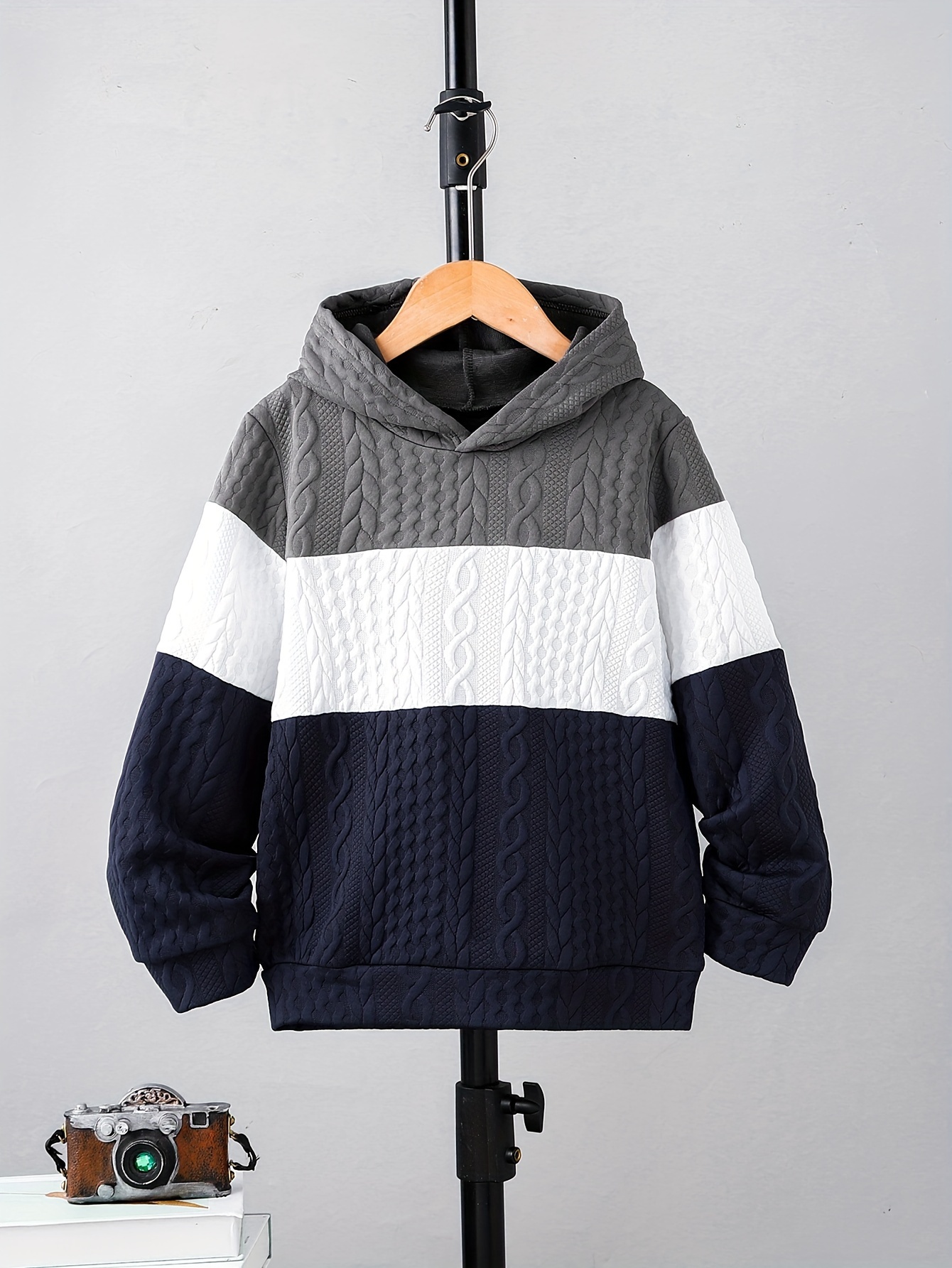 استعدوا لموسم الخريف والشتاء بأسلوب لا يُضاهى ودفءٍ يدوم! نقدم لكم الهودي المثالي لأولادكم، المصمم ليمنحهم الراحة والأناقة في كل الأوقات. بلونه الرمادي الجذاب وتصميمه العملي، سيصبح هذا الهودي الخيار الأول لجميع مغامراتهم اليومية، من اللعب في الهواء الطلق إلى التجمعات العائلية.