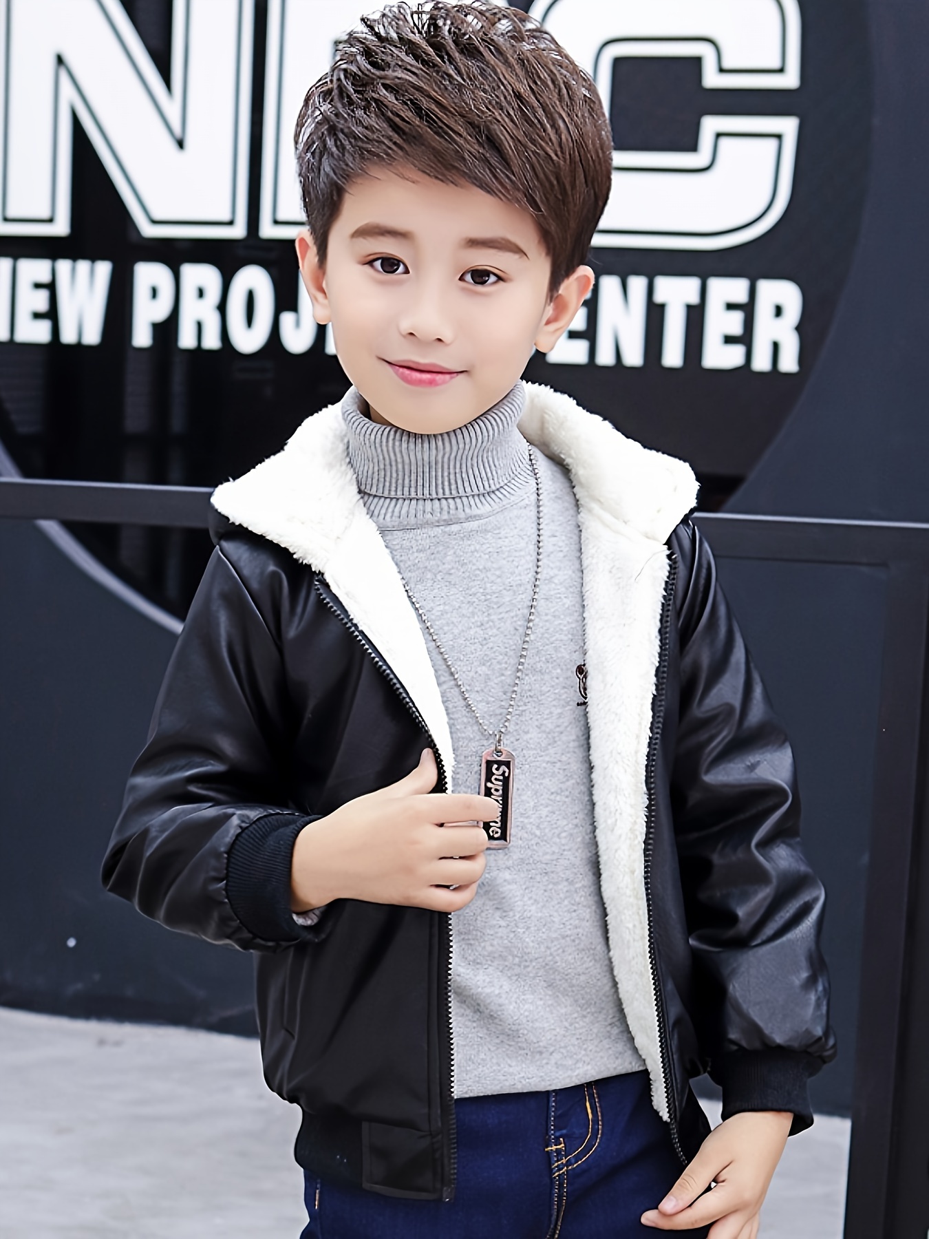 - المتانة والأناقة: مصنوعة من جلد البولي يوريثان الصناعي عالي الجودة الذي يمنحها مظهراً عصرياً وفاخراً، مع بطانة داخلية ناعمة من ألياف البوليستر لتوفير أقصى درجات الدفء والراحة لطفلك.