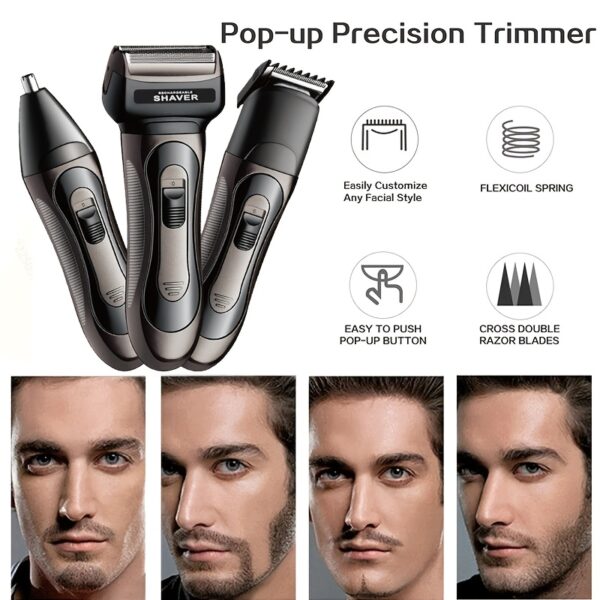 - العناية الشاملة 3 في 1: استمتع بحلاقة ناعمة ودقيقة، تشذيب مثالي لشعر الأنف والأذن، وتحديد احترافي لمظهرك، كل ذلك في جهاز واحد يغنيك عن الحاجة لأدوات متعددة.