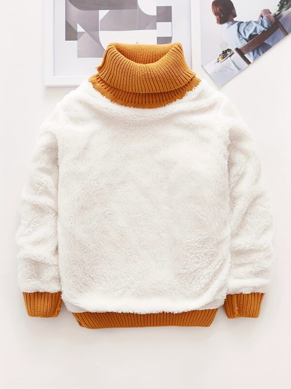 - دفء لا يضاهى: تمتعوا بطبقة عازلة فائقة! الكنزة مبطنة بالكامل بالفرو الناعم والدافئ من الداخل، ومعززة بياقة عالية توفر حماية إضافية للرقبة، لضمان أقصى درجات الدفء لطفلك حتى في أبرد الأيام.