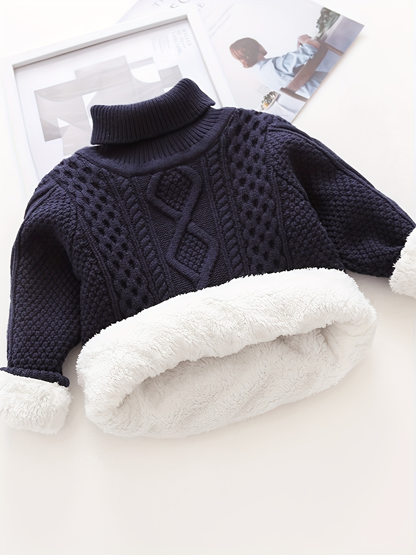 - دفء لا يضاهى: تمتعوا بطبقة عازلة فائقة! الكنزة مبطنة بالكامل بالفرو الناعم والدافئ من الداخل، ومعززة بياقة عالية توفر حماية إضافية للرقبة، لضمان أقصى درجات الدفء لطفلك حتى في أبرد الأيام.