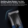 - شفرات من الستانلس ستيل عالية الجودة: مصممة بدقة لتوفر حلاقة ناعمة ودقيقة دون تهيج للبشرة، مع متانة استثنائية ومقاومة للصدأ والتآكل، لضمان تجربة استخدام تدوم طويلاً وتحافظ على حدتها.