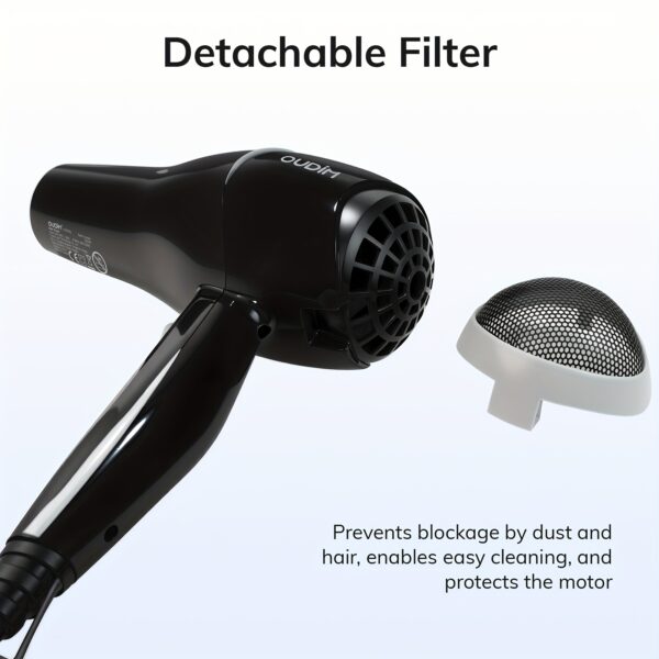 • فلتر سهل التنظيف: مزود بفلتر هواء قابل للإزالة، مما يسهل عملية التنظيف ويحافظ على أداء الجهاز الأمثل، ويحمي شعرك من أي شوائب أو غبار.