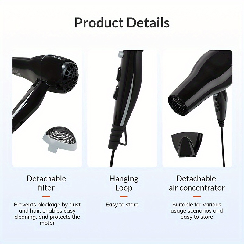 • قوة جبارة وأداء لا يُضاهى: بفضل محركه القوي بقدرة 2200 واط، يضمن لك تجفيفاً فائق السرعة وتصفيفاً فعالاً، موفراً وقتك الثمين ومانحاً إياك نتائج صالونات التجميل الاحترافية.