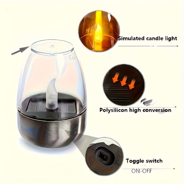 - طاقة شمسية مستدامة: وداعاً للبطاريات التي تُستبدل! تشحن شموعنا نفسها تلقائياً خلال النهار بفضل الألواح الشمسية المدمجة، لتضيء ليلاً بوهج ساحر دون الحاجة لأسلاك أو كهرباء إضافية.