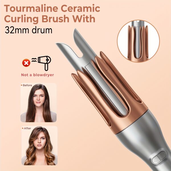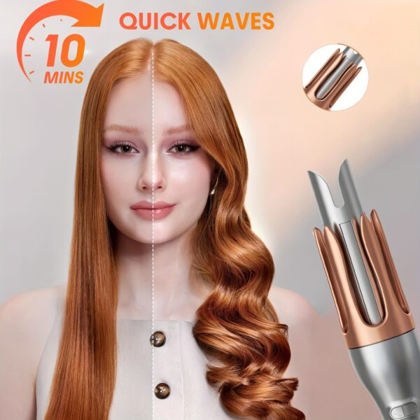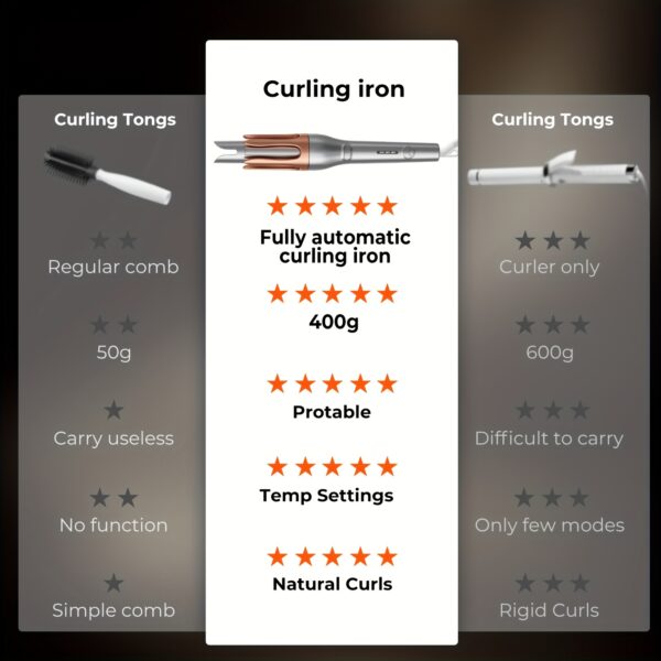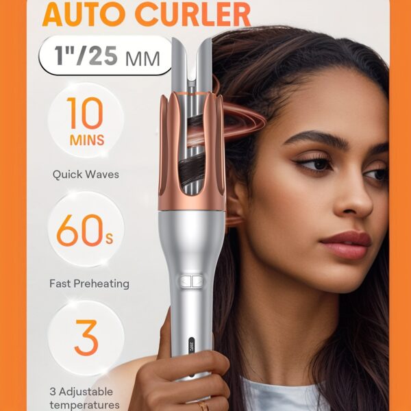 - تجعيد سهل وآمن: وداعاً للالتفافات المعقدة! يقوم الجهاز بسحب شعركِ بلطف وتجعيده تلقائياً للحصول على تموجات مثالية بكل سهولة وأمان، لتستمتعي بتجربة تصفيف مريحة وخالية من الإجهاد.