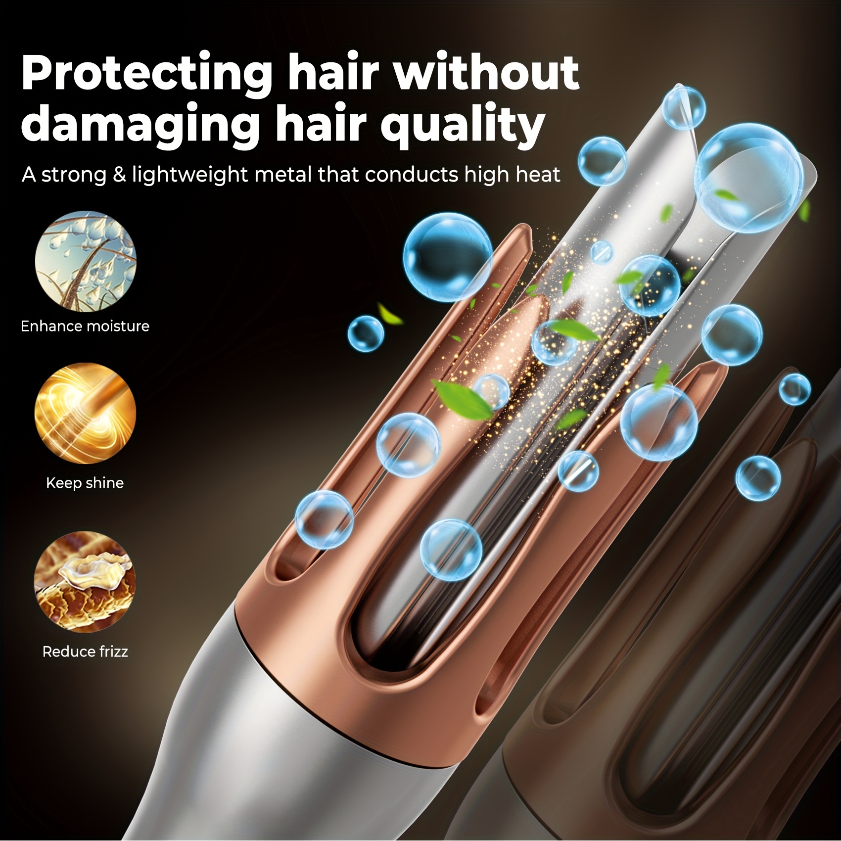 - حماية قصوى لشعركِ ويديكِ: تصميم مبتكر مضاد للحرق يضمن سلامة يديكِ وفروة رأسكِ، وميزة مضادة للتشابك تمنع أي سحب أو تلف لشعركِ، لتصفيف آمن ومريح.