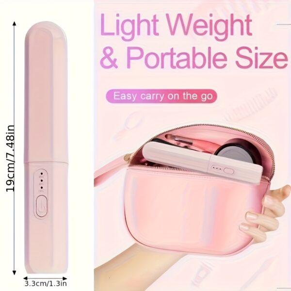 • لاسلكية ومحمولة: استمتعي بحرية التصفيف المطلقة بفضل التصميم اللاسلكي المدمج والبطارية القابلة لإعادة الشحن. اشحنيها بسهولة عبر منفذ USB وجهزيها لأي مغامرة، سواء كنتِ في المنزل، العمل، أو أثناء السفر.