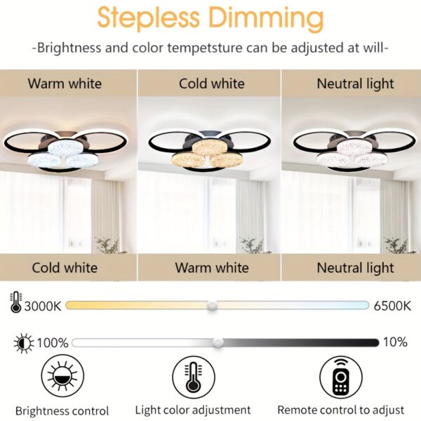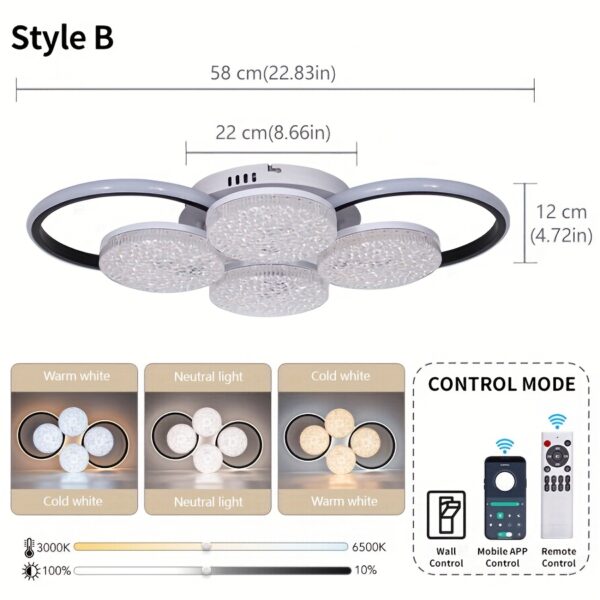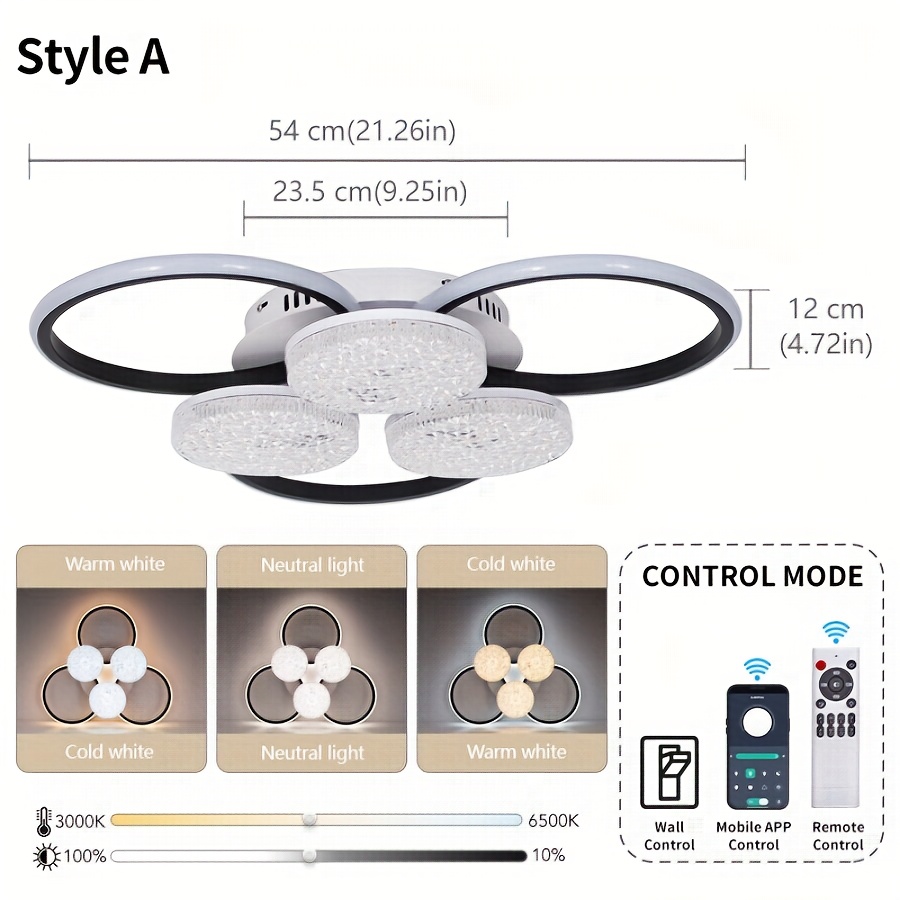 - التحكم الذكي المطلق: استمتع بالتحكم الكامل في درجة حرارة اللون (من الأبيض الدافئ المريح إلى الأبيض البارد المنعش) ومستوى السطوع بلمسة زر، سواء من جهاز التحكم عن بعد المرفق أو عبر تطبيق خاص وسهل الاستخدام على هاتفك الذكي. اجعل إضاءتك تتكيف مع كل لحظة ومزاج.