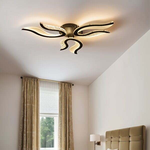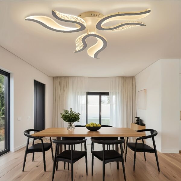 - تكامل مثالي للمساحة: تصميمها شبه الدافق (قريب من السقف) يجعلها حلاً مثالياً للغرف ذات الأسقف المنخفضة أو العالية، موفرة للمساحة ومانحة إضاءة قوية دون إعاقة الحركة البصرية.