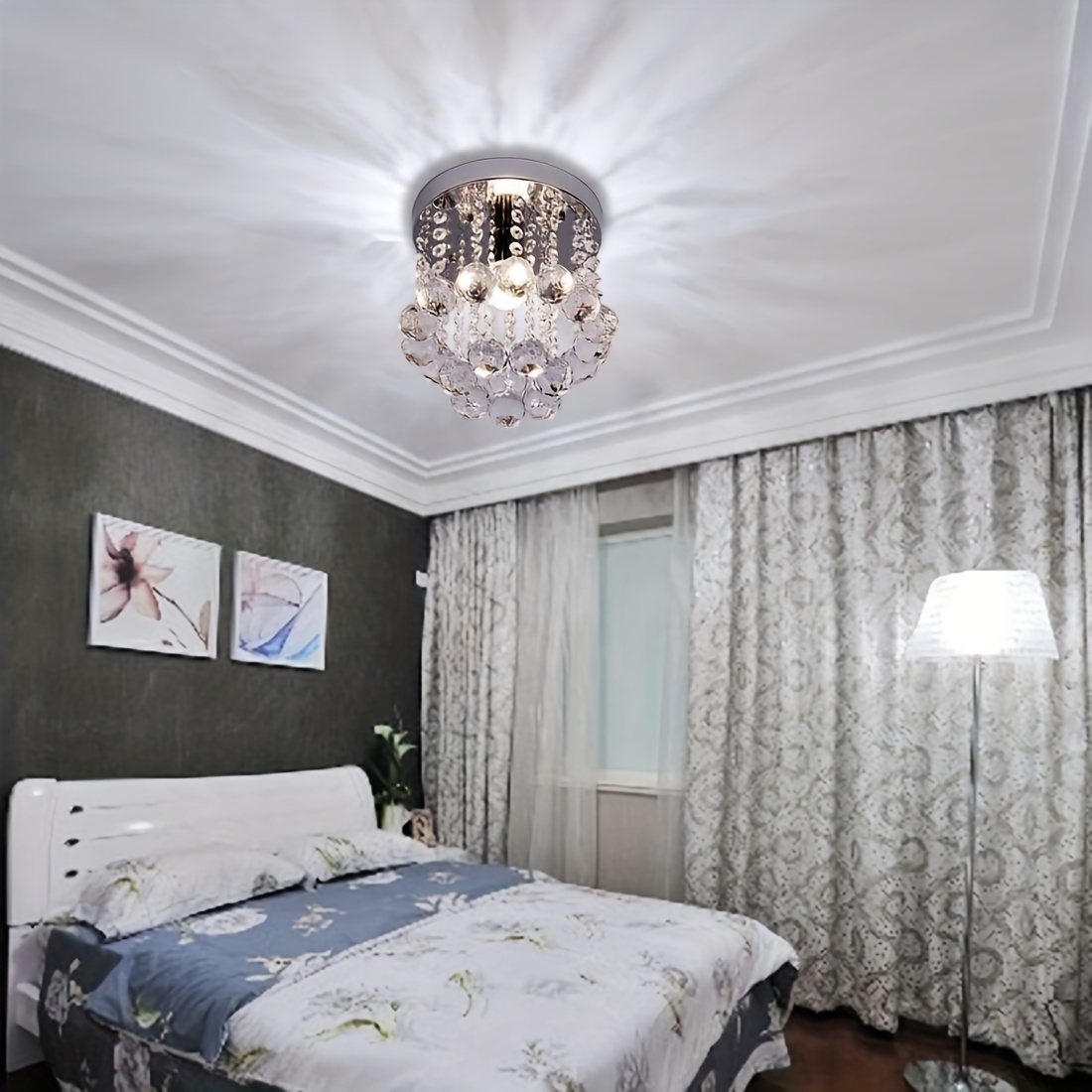 • تصميم عصري وجذاب: استمتع بجمال الثريا الكريستالية العصرية بتصميمها الصغير والمتقن، الذي يضيف لمسة من الرقي والأناقة الفورية لأي غرفة.
