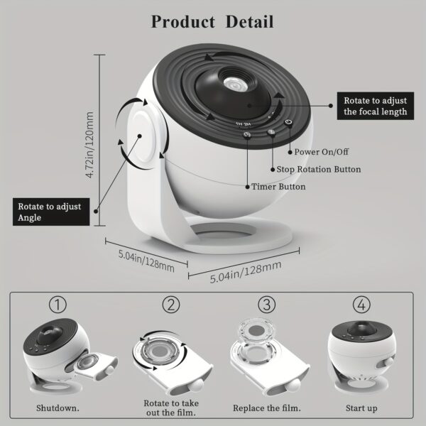 - تجربة كونية ديناميكية 360°: يوفر الجهاز دورانًا ذكيًا بزاوية 360 درجة، مما يخلق مشهدًا سماويًا متحركًا يملأ غرفتك بالنجوم والمجرات المتلألئة، محاكيًا حركة الكون الحقيقية.