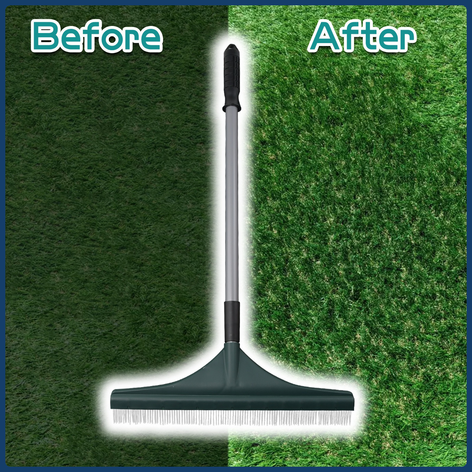 - رأس متعدد المهام بقوة مضاعفة: يجمع بين قوة المجرفة لجمع الأوراق والمخلفات وفعالية الفرشاة ذات الشعيرات المتينة عالية الجودة، ليضمن لك تنظيفاً شاملاً وفعالاً لكل من العشب الطبيعي والصناعي بلمسة واحدة.
