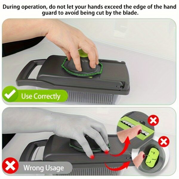 • مثالي لكل الأطعمة: لا تقتصر وظائفه على نوع معين! مثالية لتقطيع البصل، البطاطس، الجزر، الطماطم، الفواكه المتنوعة، والخضروات الورقية وغيرها الكثير. اجعل تحضير السلطات واليخنات أسهل من أي وقت مضى.