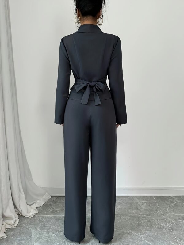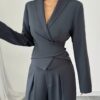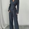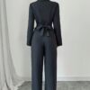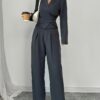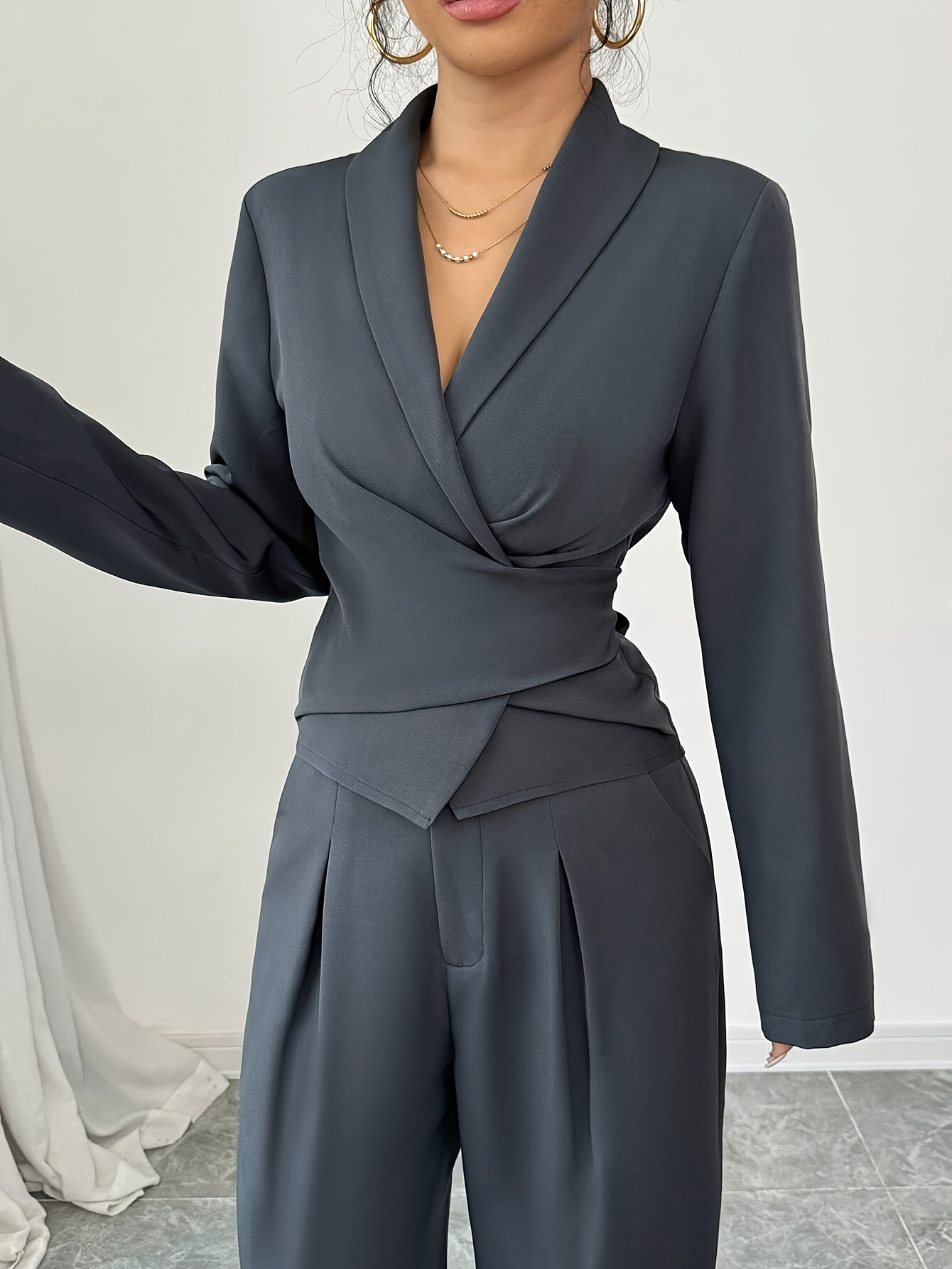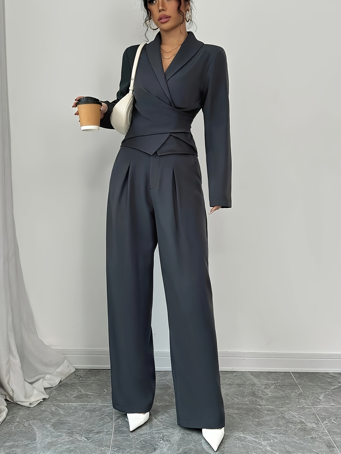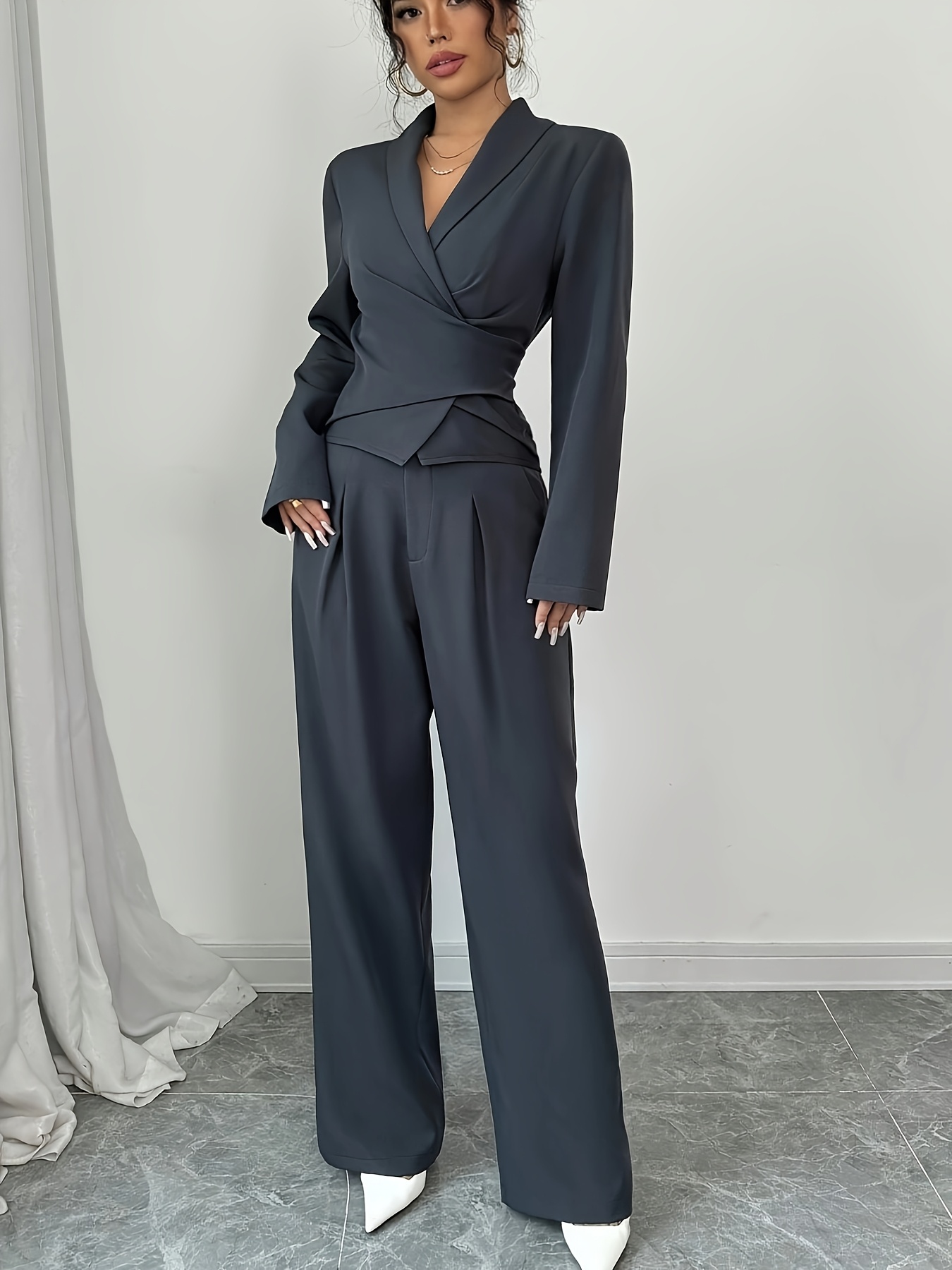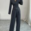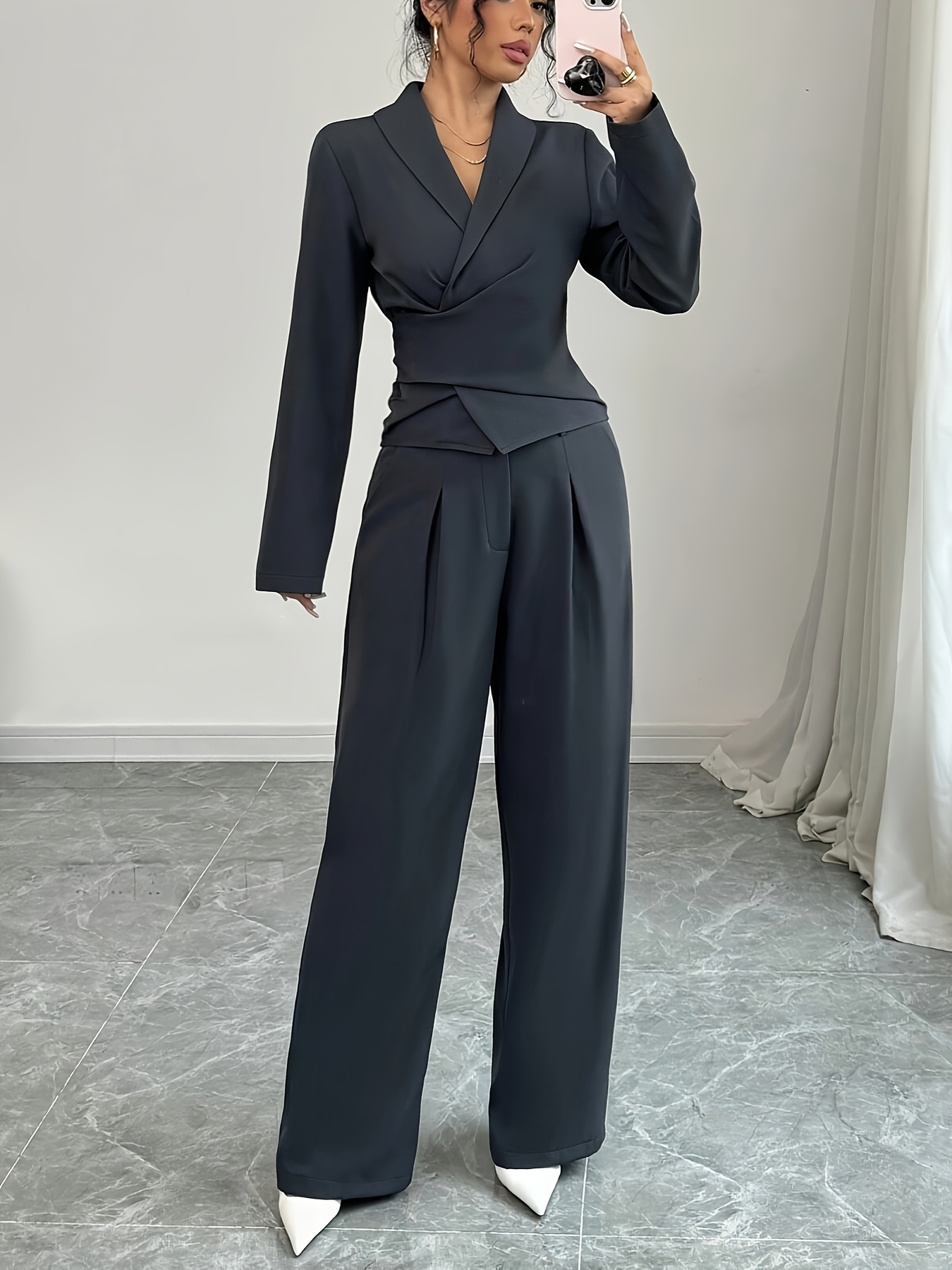 طقم الأناقة المتكامل: بلوزة ملفوفة بأكمام طويلة وبنطلون نسائي