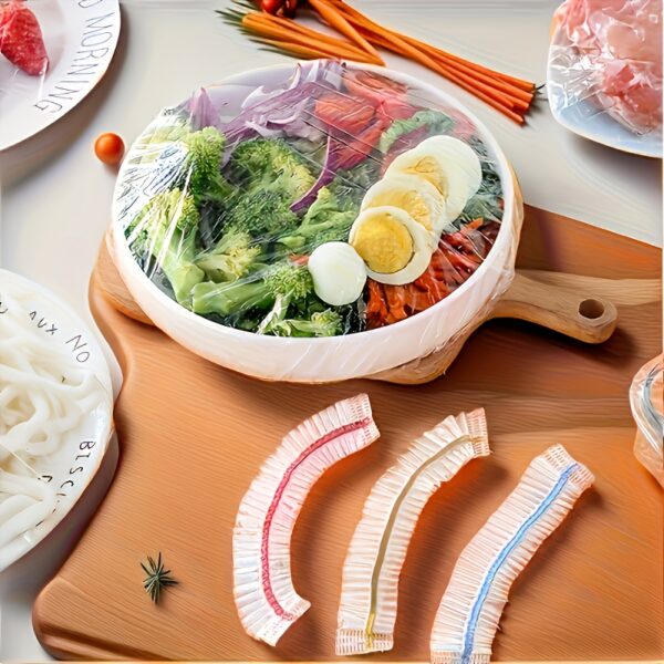• سهولة فائقة في الاستخدام والتخلص: بفضل مرونتها، تتكيف هذه الأغطية بسهولة مع مختلف أحجام وأشكال الأوعية. وبعد الاستخدام، يمكن التخلص منها بسهولة، لتوفير نظافة مثالية دون عناء الغسيل.