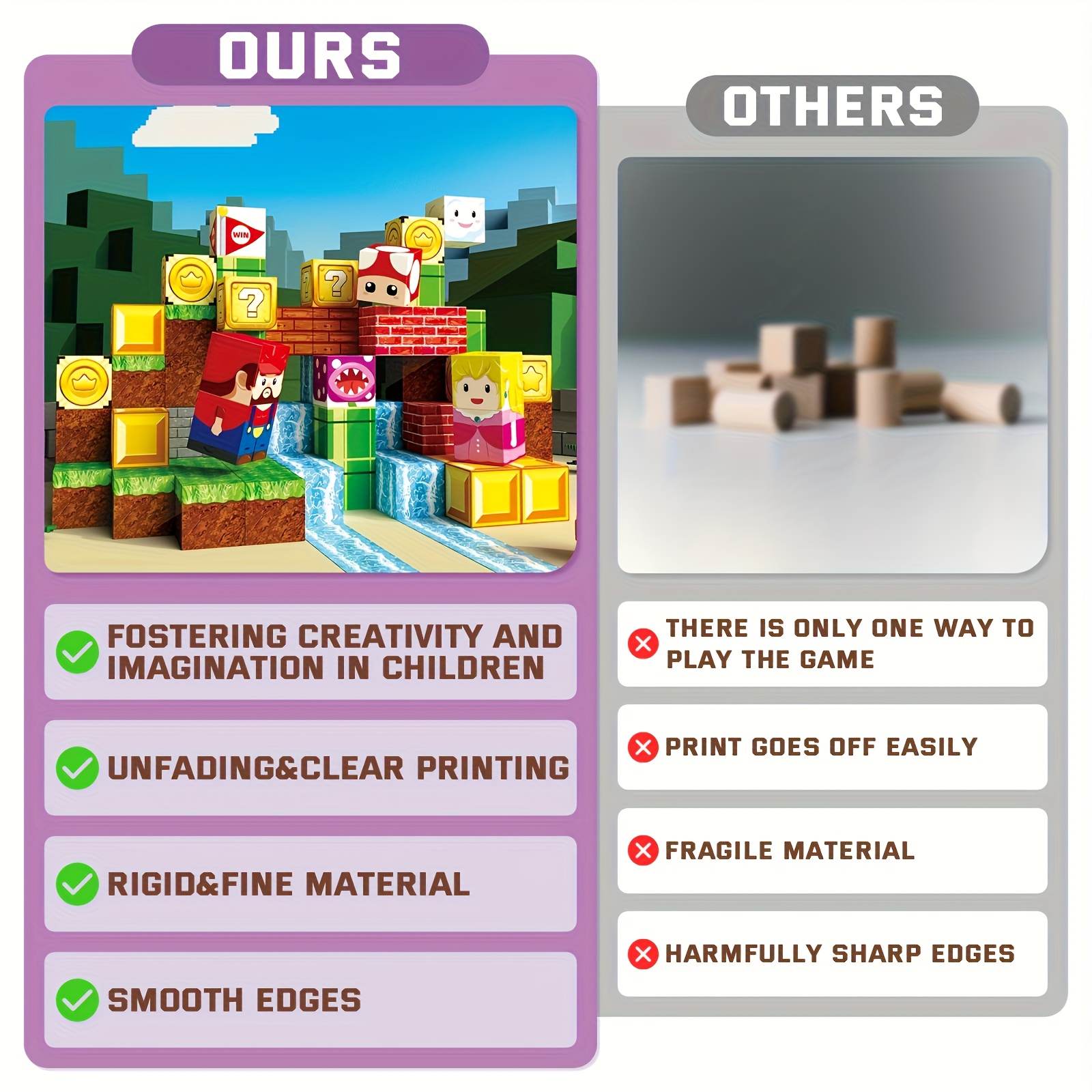 • تعزيز شامل للمهارات: هذه المكعبات ليست مجرد لعبة، بل أداة تعليمية قوية تعزز المهارات الحركية الدقيقة، وتنمي التفكير المنطقي وحل المشكلات، بالإضافة إلى تحفيز الإبداع والخيال اللامحدود لدى الأطفال في سن مبكرة.