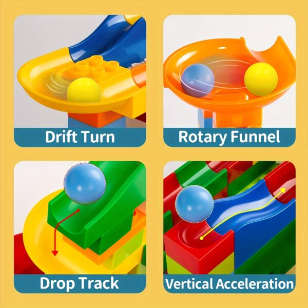 - تصميم مسار منزلق مبتكر: استمتع بتجربة بناء ديناميكية حيث يمكن لطفلك إنشاء مسارات متشابكة وقابلة للانزلاق، مما يضيف بعدًا جديدًا للعب ويزيد من التحدي والمتعة.