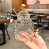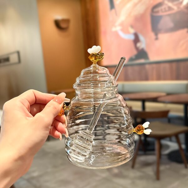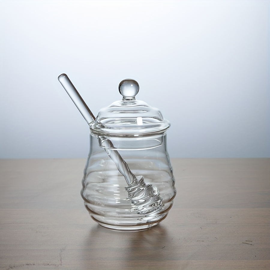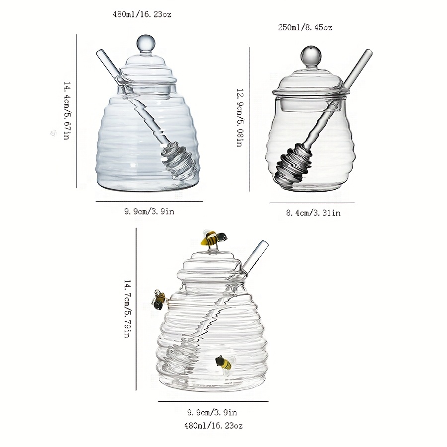 • زجاج بوروسيليكات عالي الجودة: مصممة من زجاج البوروسيليكات فائق المتانة والمقاوم للحرارة والصدمات، مما يضمن لك جرة تدوم طويلاً وتحافظ على بريقها. كما يبرز شفافية الزجاج جمال العسل بوضوح.