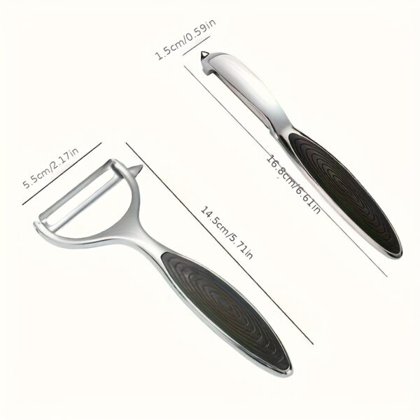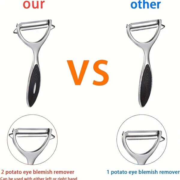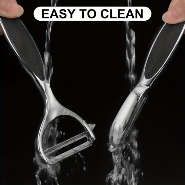 • تصميم مزدوج مبتكر (Y و I): استمتع بمرونة لا حدود لها مع تصميمها العملي الذي يجمع بين شكلين Y و I في أداة واحدة، مما يتيح لك تقشير جميع أنواع الفواكه والخضروات بسهولة، بغض النظر عن حجمها أو شكلها.