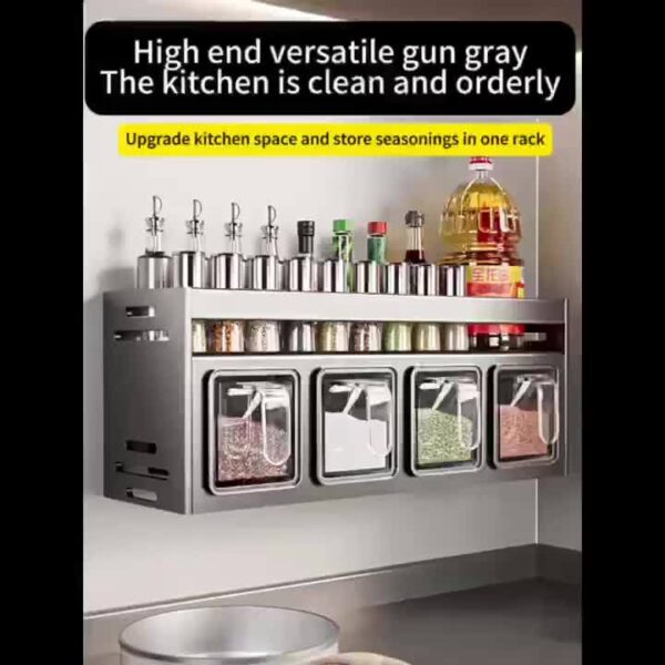 • تنظيم شامل لجميع احتياجاتك: ليس فقط للتوابل! استخدمه لتنظيم الزيوت، الصلصات، المعلبات الصغيرة، أو حتى أدوات المطبخ الخفيفة، مما يجعله قطعة متعددة الاستخدامات لا غنى عنها في أي مطبخ عصري.