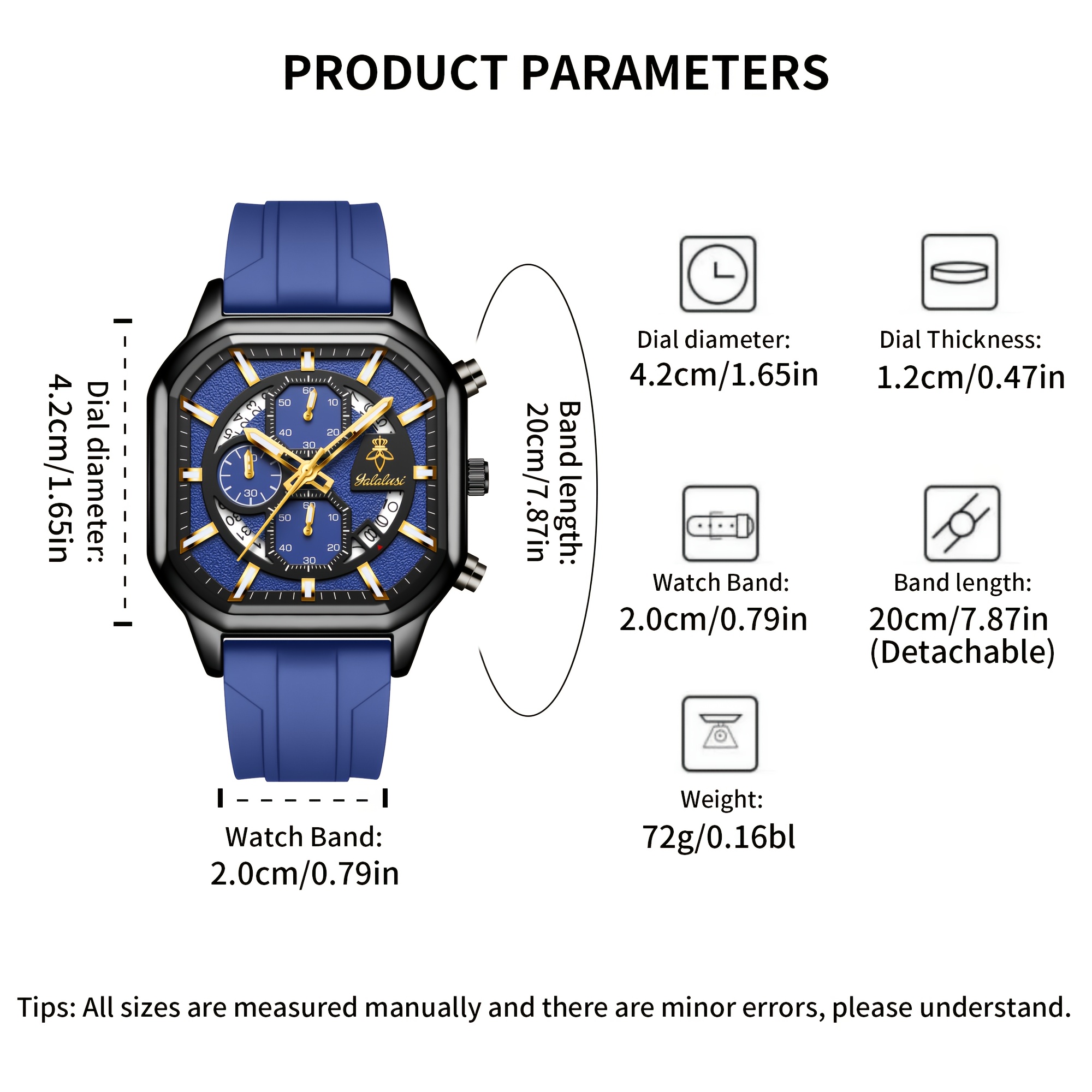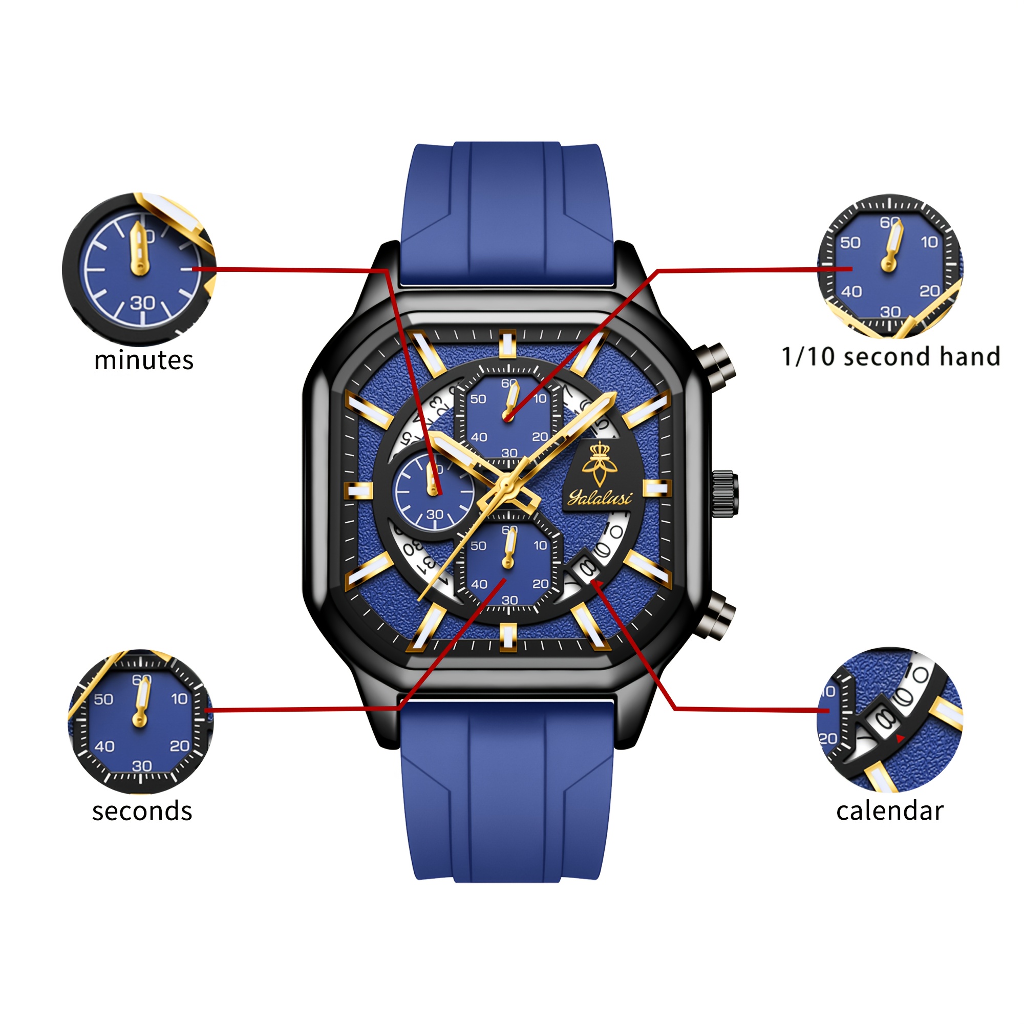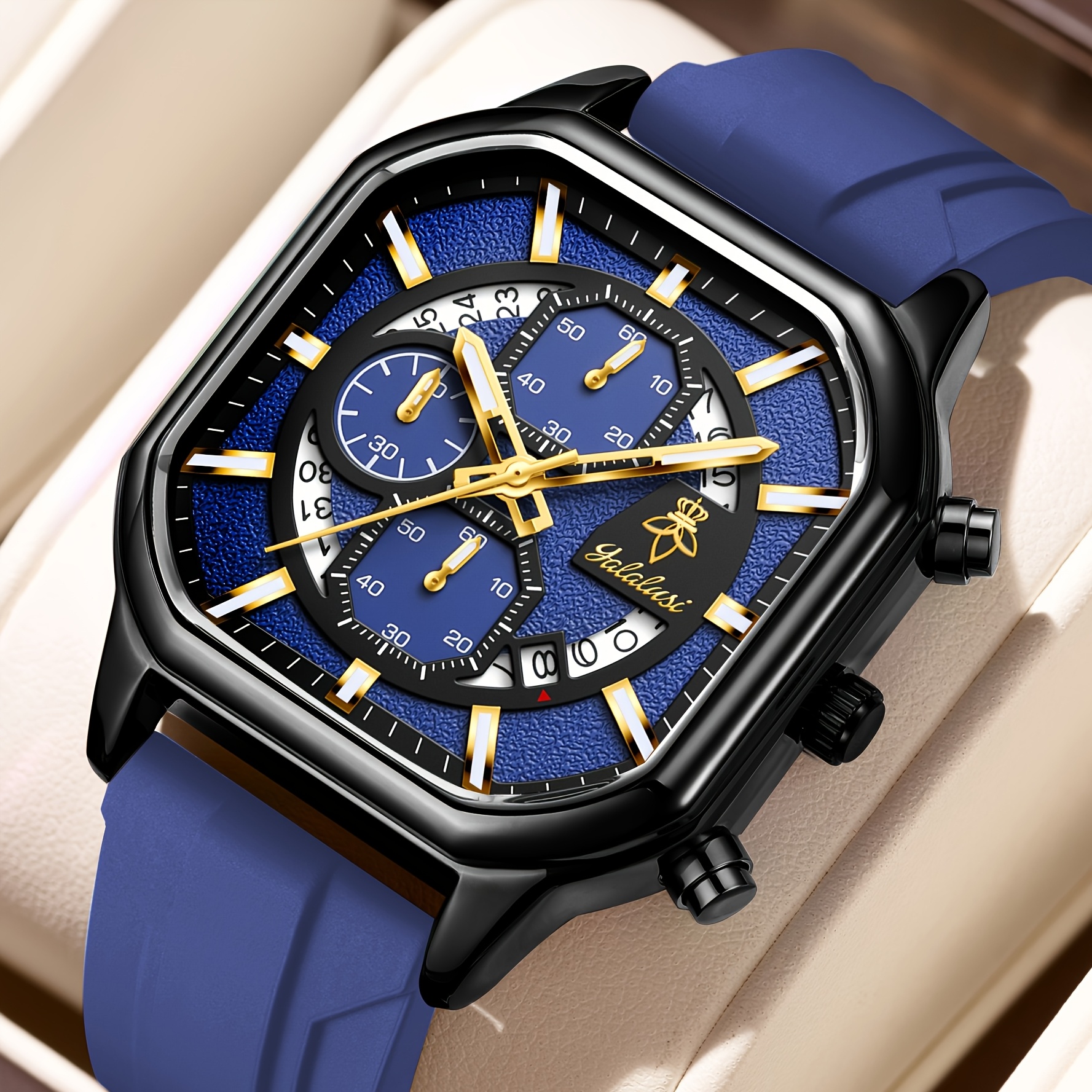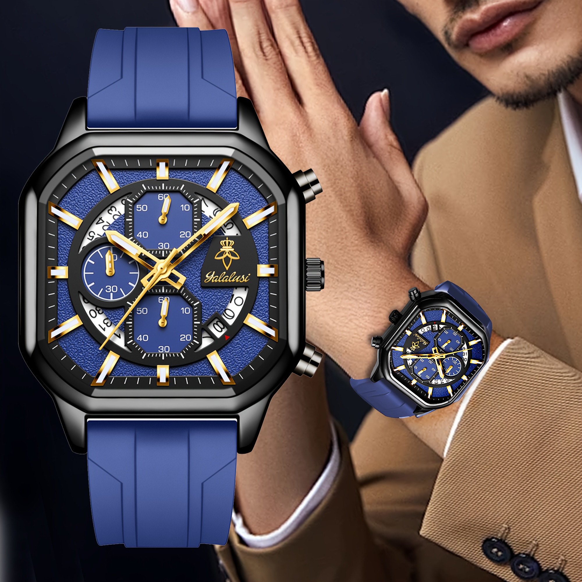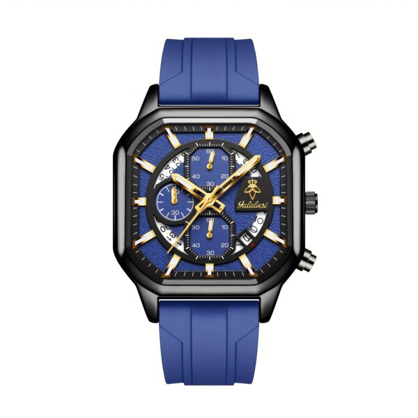 ارتقِ بأسلوبك مع ساعة YALALUSI المربعة، تحفة فنية تجمع بين التصميم الجريء والأداء الموثوق. إنها ليست مجرد أداة لمعرفة الوقت، بل هي بيان للأناقة العصرية التي تليق بكل من يبحث عن التميز. صُممت هذه الساعة لتكون رفيقك المثالي في كل لحظة، سواء كنت في اجتماع عمل أو في نزهة عفوية، مانحةً معصمك لمسة من الرقي والجاذبية.