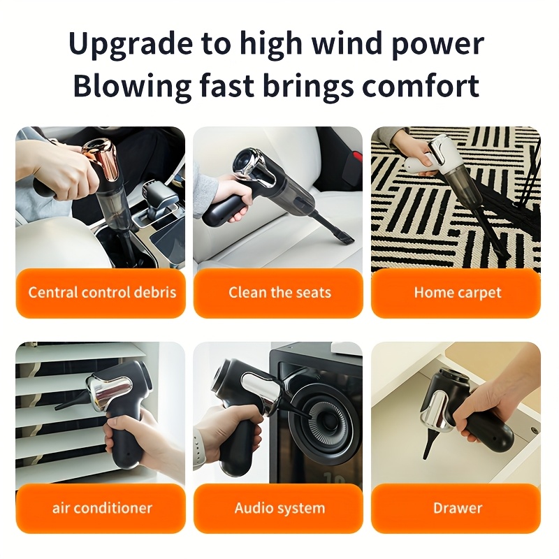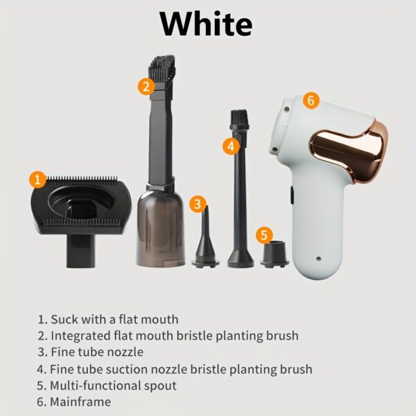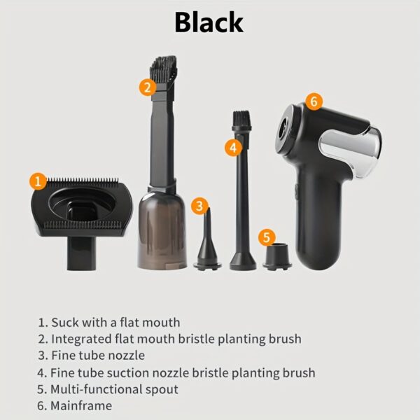 • شحن مريح وحرية لا حدود لها: استمتع بحرية التنظيف في أي مكان دون الحاجة للبحث عن مقبس كهربائي! بفضل ميزة الشحن السريع والسهل عبر USB، يمكنك شحنها بسهولة ويسر، مما يوفر لك مرونة لا مثيل لها لتنظيف الأماكن الصعبة والوصول إلى كل زاوية بسرعة وكفاءة.