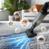 • إزالة شعر متكاملة وفعالة: قل وداعاً لمشكلة شعر الحيوانات الأليفة! صُممت هذه المكنسة المبتكرة لإزالة شعر القطط والكلاب بفاعلية تامة من كافة الأسطح؛ الأرائك الفخمة، الأرضيات الصلبة، البطانيات الدافئة، مقاعد السيارات، الملابس، وحتى السجاد، لتترك منزلك نظيفاً ومنتعشاً وخالياً من أي أثر للشعر.