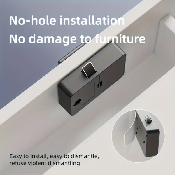 • تركيب خالٍ من المتاعب: قل وداعاً للحفر والأدوات المعقدة. تتميز هذه الأقفال بتصميم يتيح التركيب السريع والسهل دون الحاجة لأي ثقب، مما يحافظ على سلامة أثاثك.