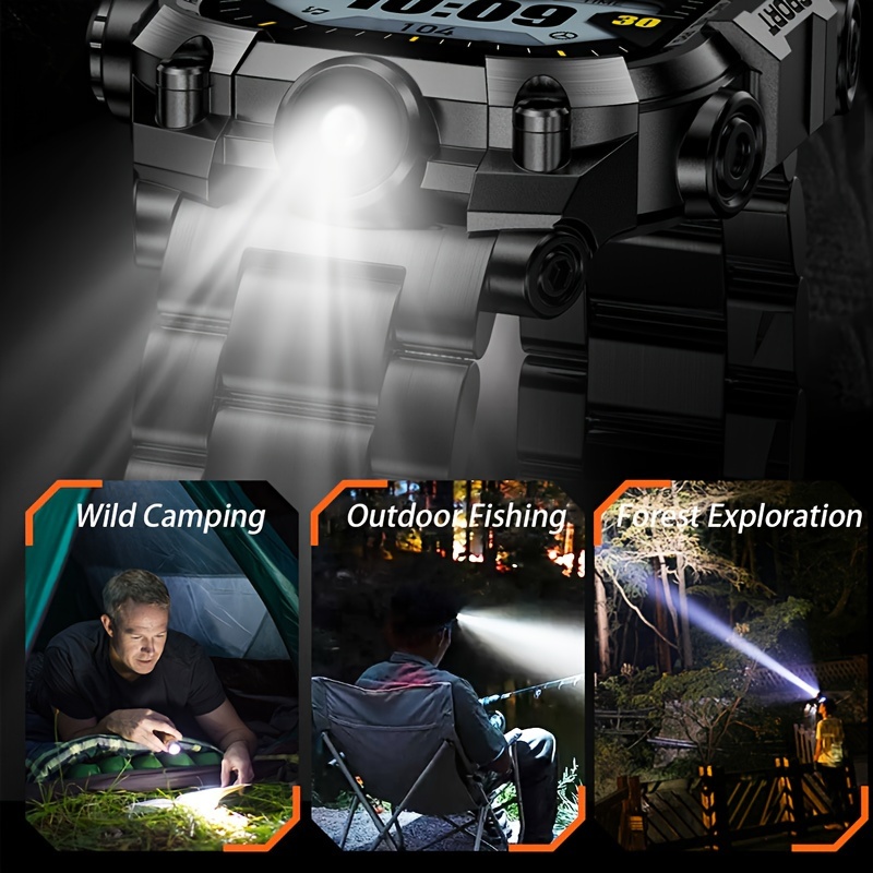 • مصباح يدوي مدمج: لا تدع الظلام يوقف مغامراتك. استخدم المصباح اليدوي المدمج لإضاءة طريقك في الأماكن المظلمة أو عند الحاجة.