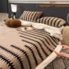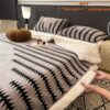 • طقم متكامل متعدد الاستخدامات: يأتي الطقم ببطانية أنيقة وواحدة أو اثنتين من أكياس الوسائد المطابقة، مثالي للاستخدام كغطاء للسرير، بطانية رمي للكنبة، أو حتى لتزيين غرفة المعيشة وغرفة النوم.